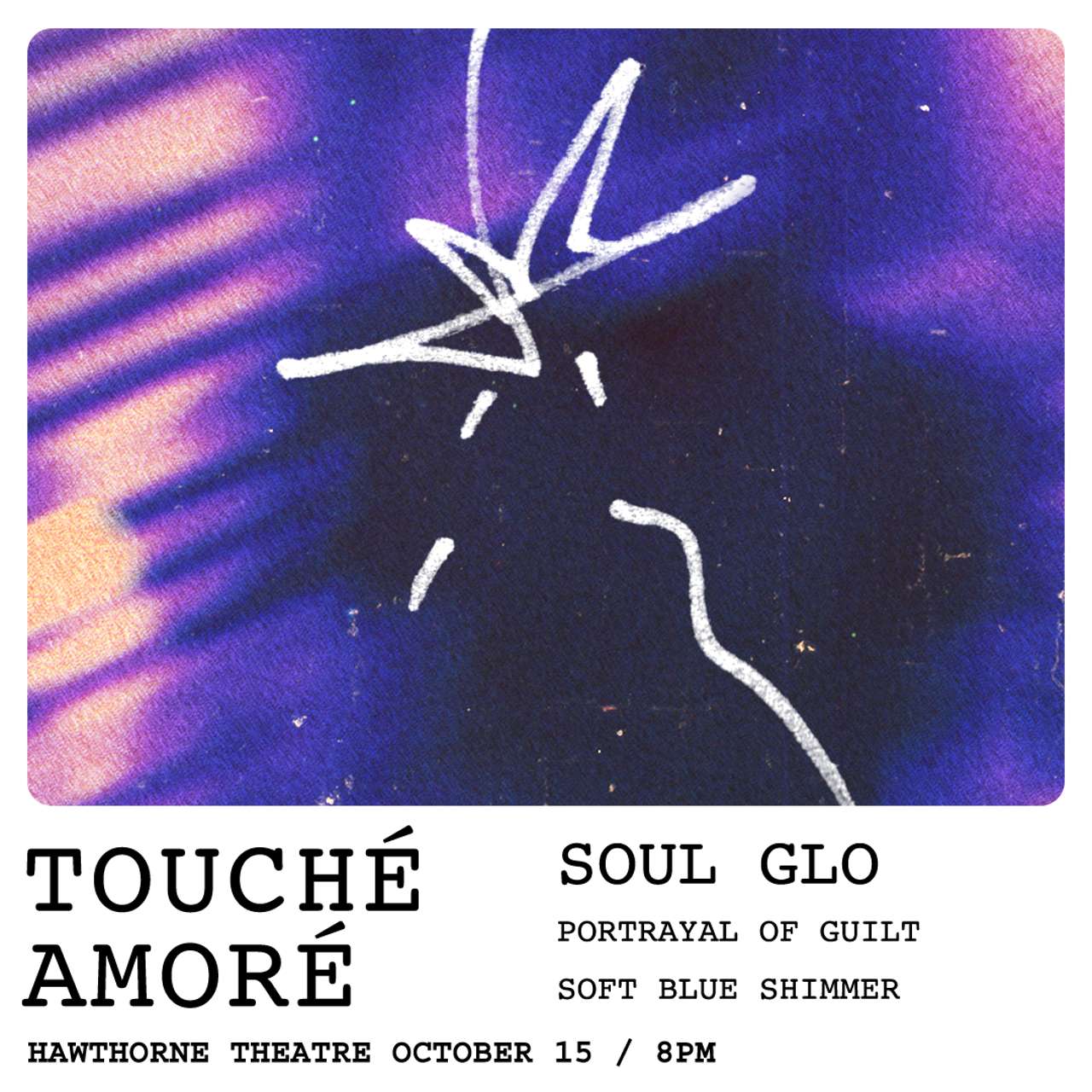 Mammoth NW Presents: Touché Amoré Soul Glo Portrayal of Guilt Soft Blue Shimmer Tuesday, October 15th, 2024 7:30PM Hawthorne Theatre All Ages | Bar w/ valid ID No refunds or exchanges. All sales final.