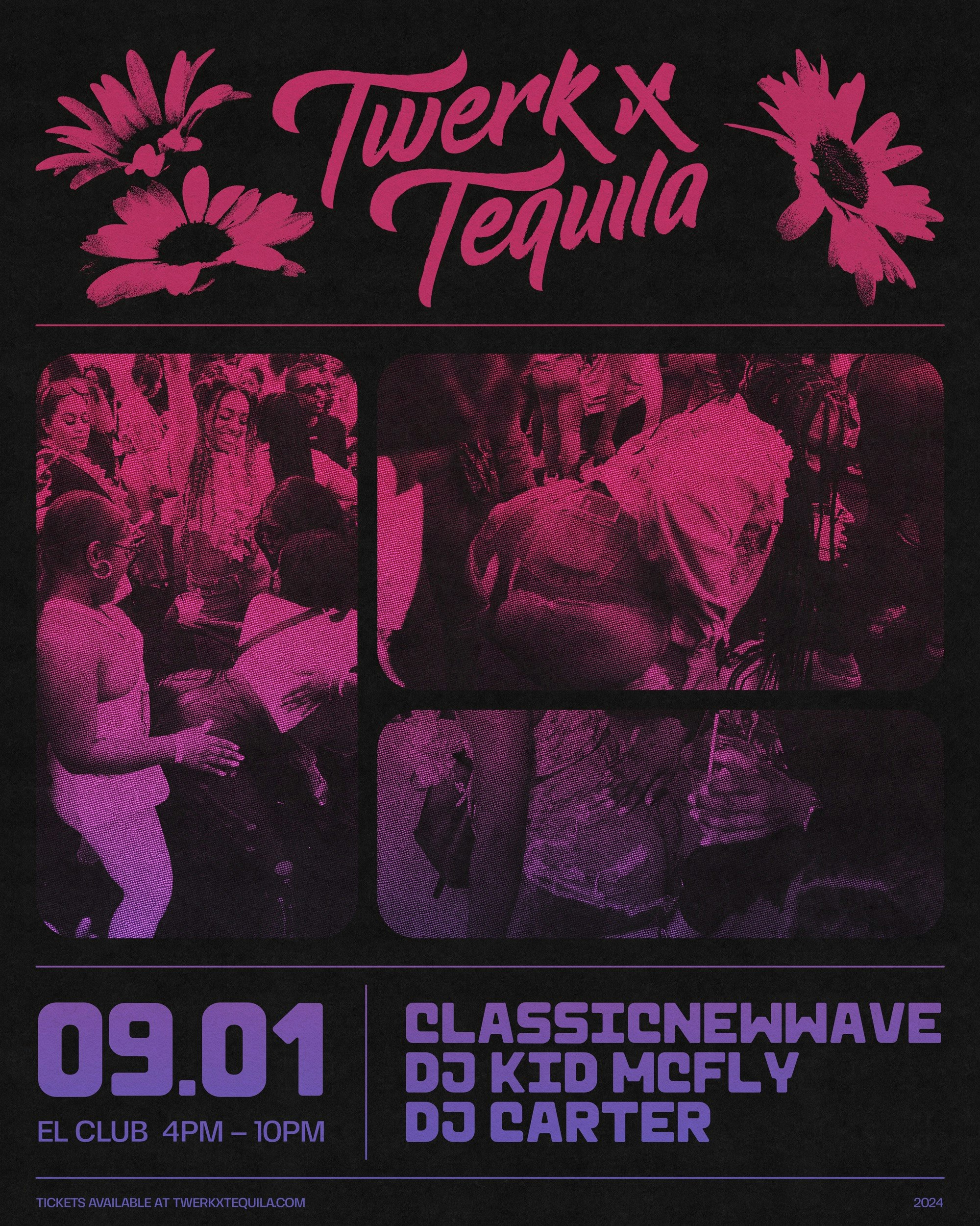 Twerk x Tequila September 1st 2024 4-10pm DJs - CLASSICNEWWAVE, DJ Kid McFly, DJ Carter Host - LanaLaDonna Presented by Twerk X Tequila. This is an 21+ event