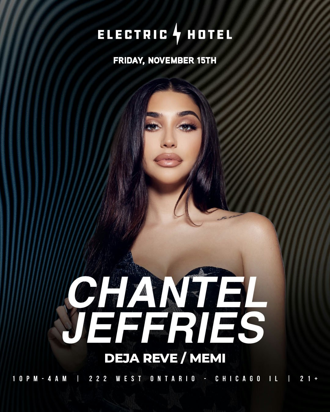 Chantel Jeffries, is an American DJ, model, and YouTube personality. She released her debut single, "Wait", on May 2, 2018, under Universal Music Group's record label 10:22pm. The song peaked at No. 10 on the Billboard Hot Dance/Electronic Songs chart.