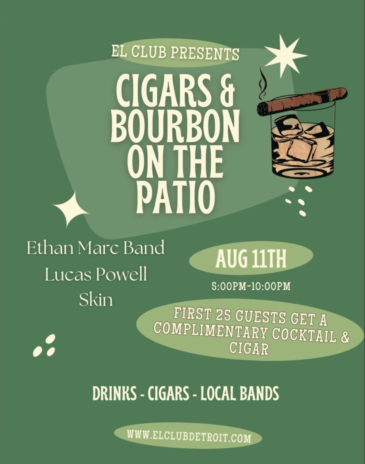 First 25 people to enter receive a complimentary cocktail and custom El Club cigar. Presented by El Club. This is an 21+ event