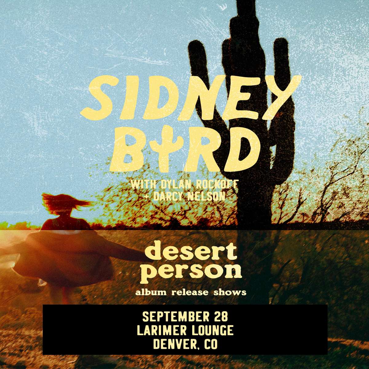 Larimer Lounge Presents Sidney Bird (album release show) with Dylan Rockoff and Darcy Nelson on Saturday, September 28th. - All ages, ticketed guests under 16 admitted with ticketed guardian