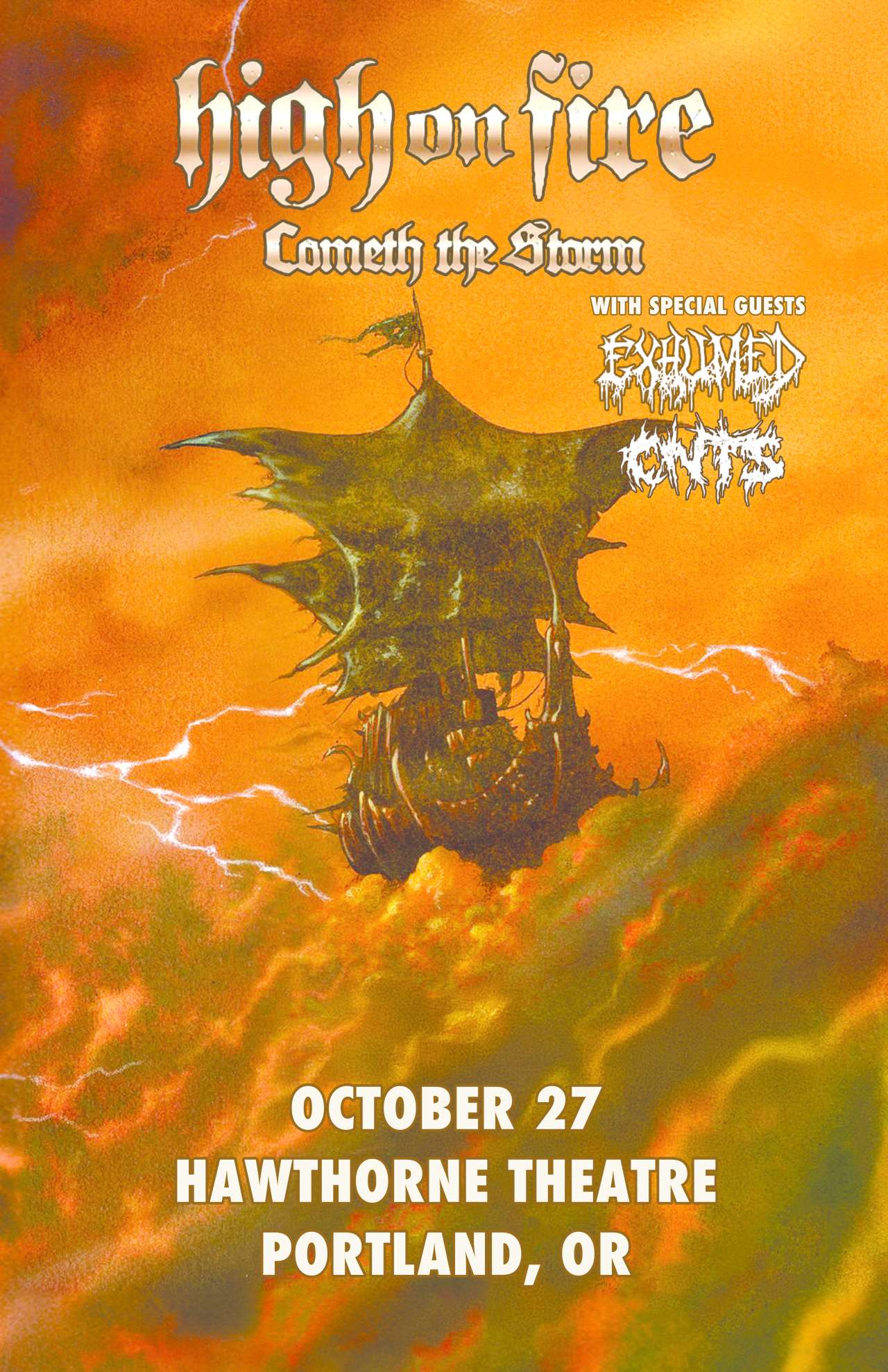 Mammoth NW Presents: High On Fire w/ Exhumed & CNTS Sunday, October 27th, 2024 7:50PM Hawthorne Theatre 21 & Over Only w/ Valid ID No refunds or exchanges. All sales final.