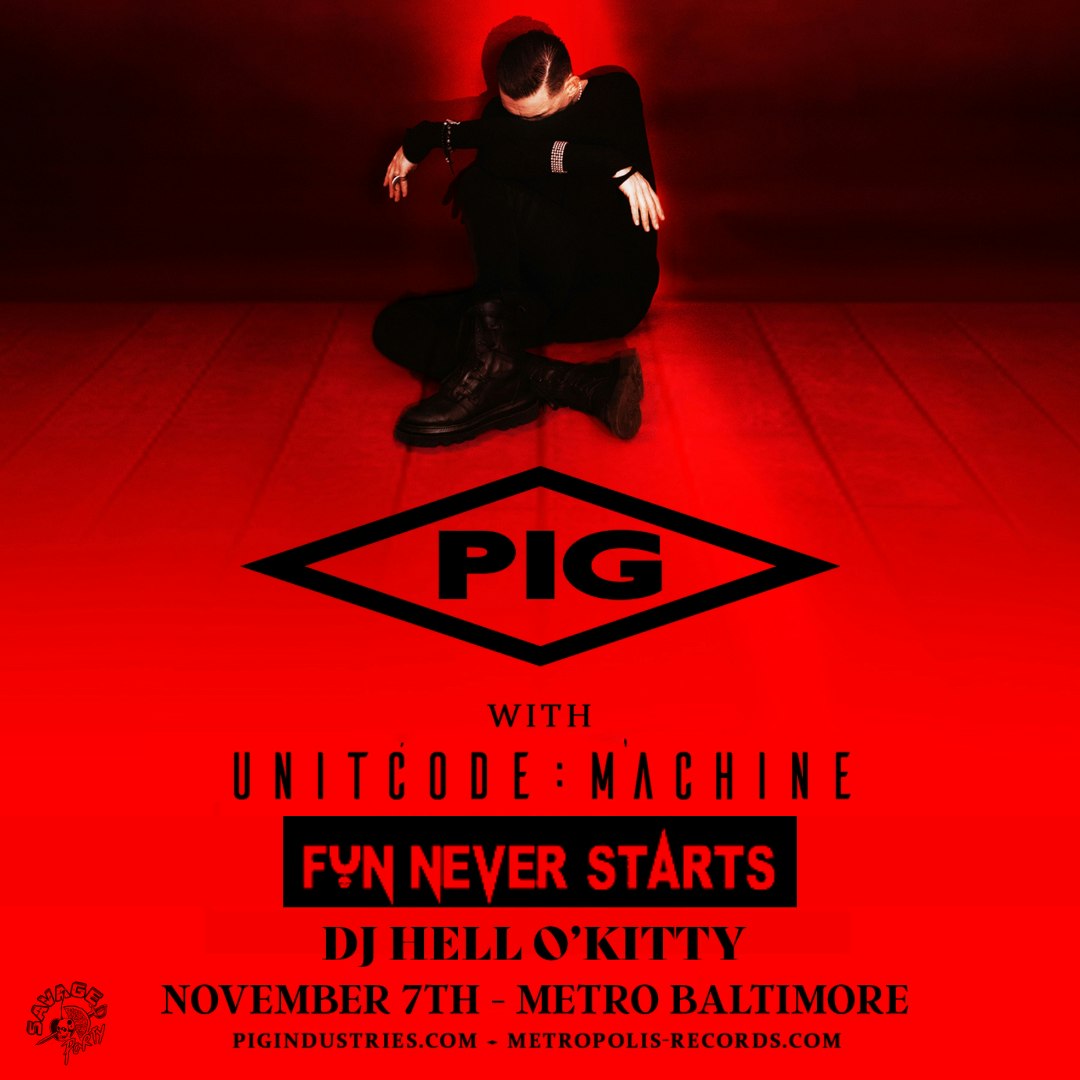 PIG with unitcode:machine, Fun Never Starts and DJ Hell O'Kitty (Black Celebration) Thursday November 7th 2024 Doors: 7:00//Show: 8:00 All Ages Presented by Metro Gallery LLC. All Ages