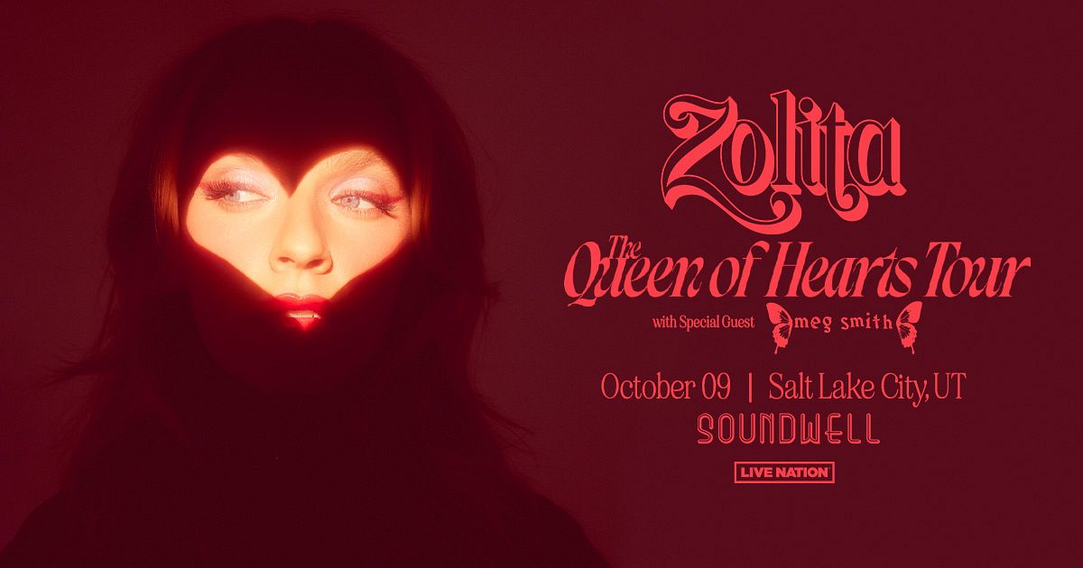 LIVE NATION PRESENTS ZOLITA: THE QUEEN OF HEARTS TOUR WITH SPECIAL GUEST: MEG SMITH VENUE LOCATION: SOUNDWELL SLC 149 W 200 S Salt Lake City, Utah 84101 CARD ONLY AT THE BOX OFFICE ALL SALES FINAL, NO REFUNDS OR EXCHANGES
