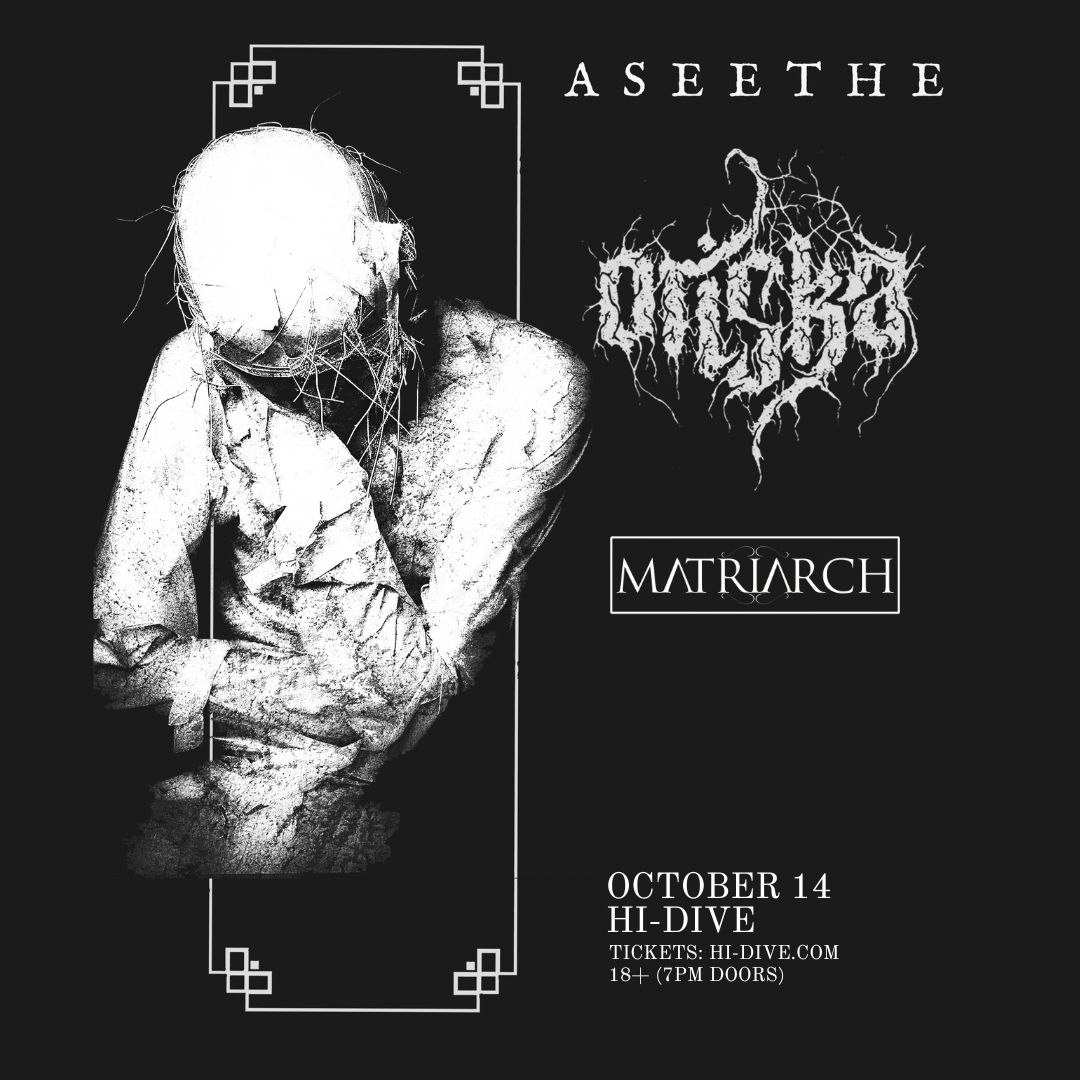 ASEETHE carve their own path in the world of heavy music. A singular blend of seismic weight, mesmeric drone, and gripping tension is the Midwestern band’s musical signature. Driven by an exploratory ethos, Aseethe warp sounds into emotionally potent songs that are as detailed as they are immense.