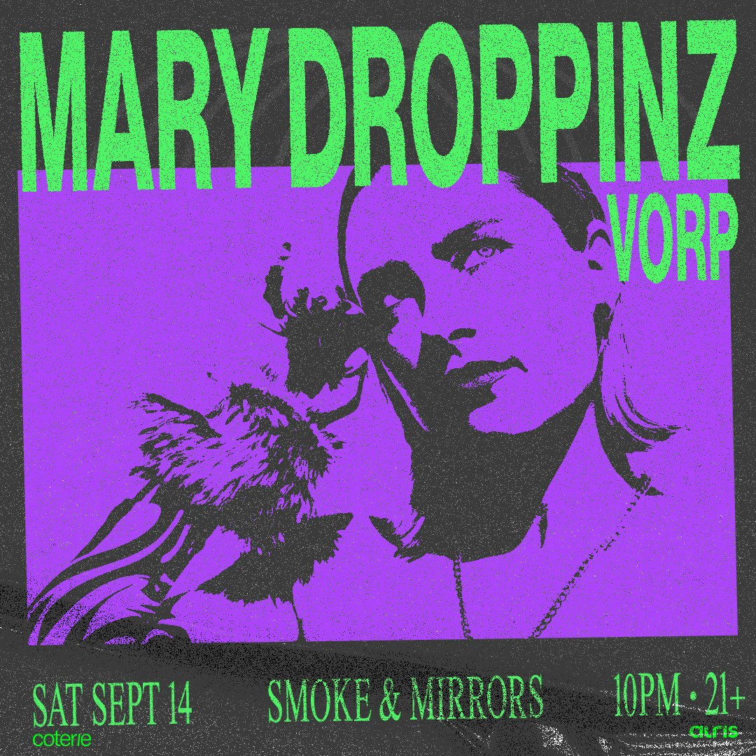 Saturday, September 14th, 2024 Mary Droppinz Vorp 2045 N Milwaukee Ave Chicago, IL 60647 Doors 10pm - 21+ w/valid ID Presented by Smoke & Mirrors. This is a 21+ event