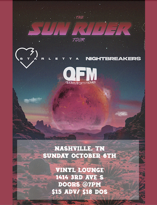 Join us at The Vinyl Lounge for Starletta x Nightbreaker with support from Quotes From Movies!