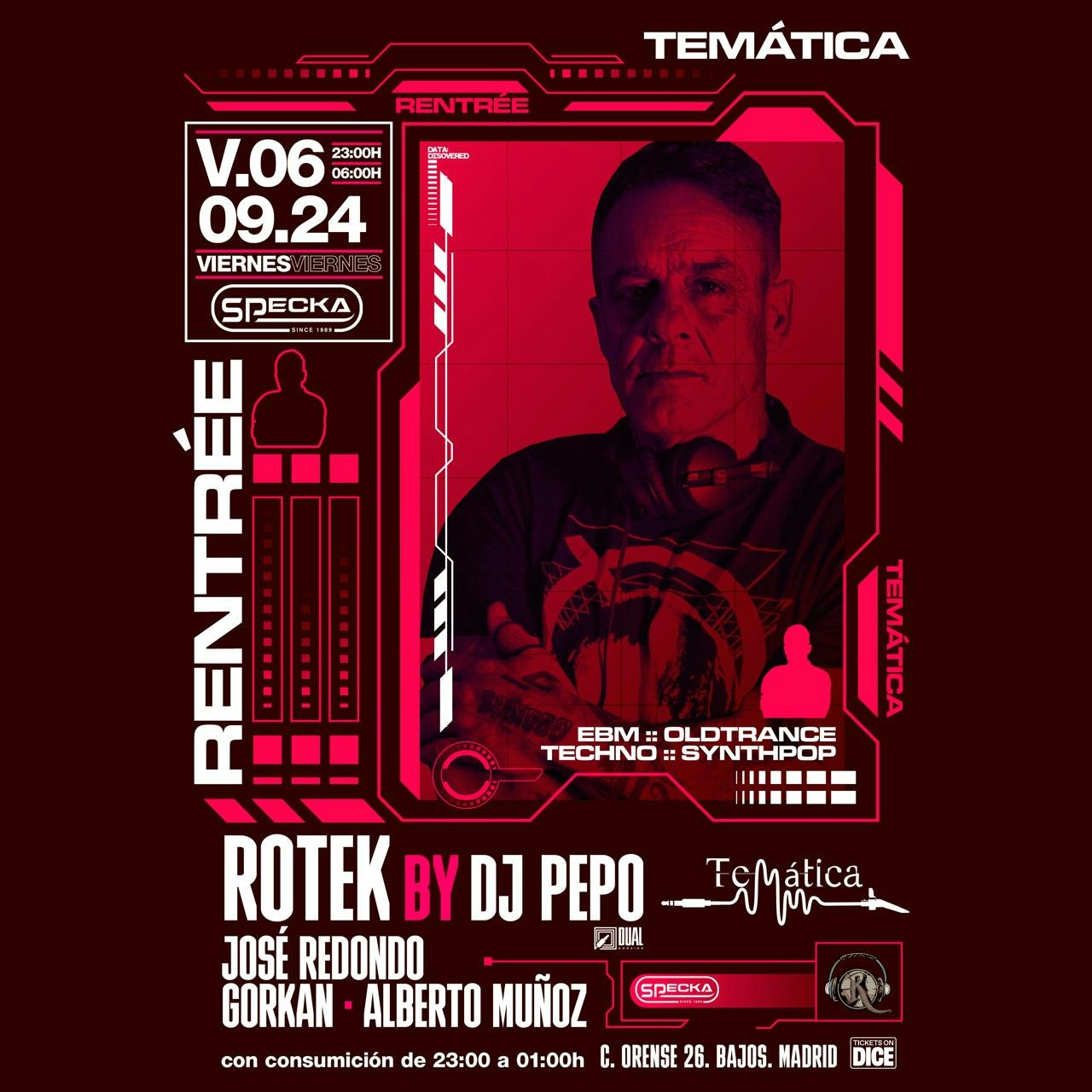 Esta vez, como la anterior, bajo su pseudónimo ROTEK, con el que despliega toda su creatividad fusionando la música que pinchaba en las cabinas de Attica, Saratoga, New World o Van Vás con el techno de vanguardia más potente del momento.