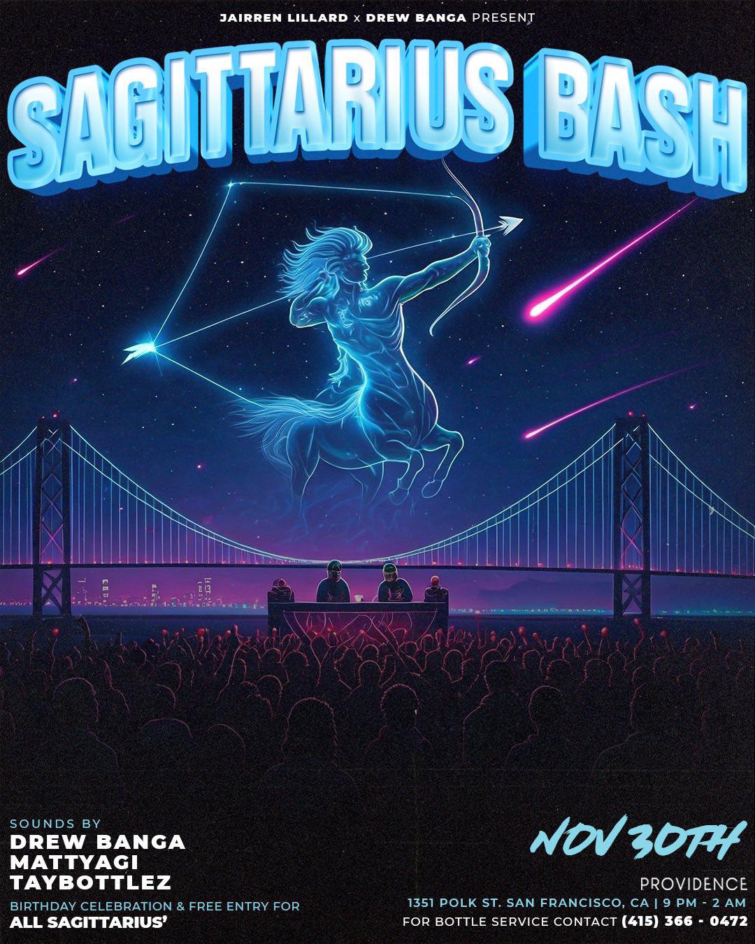 SAGITTARIUS BASH! Hip Hop Vibes All Nite! SAGITTARIUS BASH! Hip Hop Vibes All Nite!🔉Music: @drewwwwwww___ - @mattyagi - @djtaybottlez1515 🚀 Presented by: @jairrenlillard 🎟Free RSVP Guest List before 11pm —— #hiphop #openformat #SanFrancisco #SF #thecity #sfgate #Bayareabuzz #sfparty #sfevents #sfweekly #partysf #weeklysf #sanfranciscoparty #bayarea #sfclubs #sfclubbing #dothebay #rap #music #rapper #trap #beats #hiphopmusic #providenceSF
