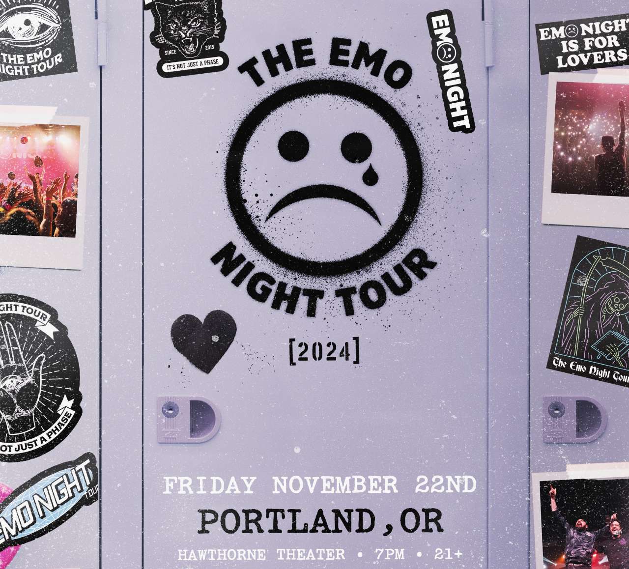 THE EMO NIGHT TOUR Friday, November 22nd, 2024 7:00PM Hawthorne Theatre 21 & Over w/ Valid ID No refunds or exchanges. All sales final.