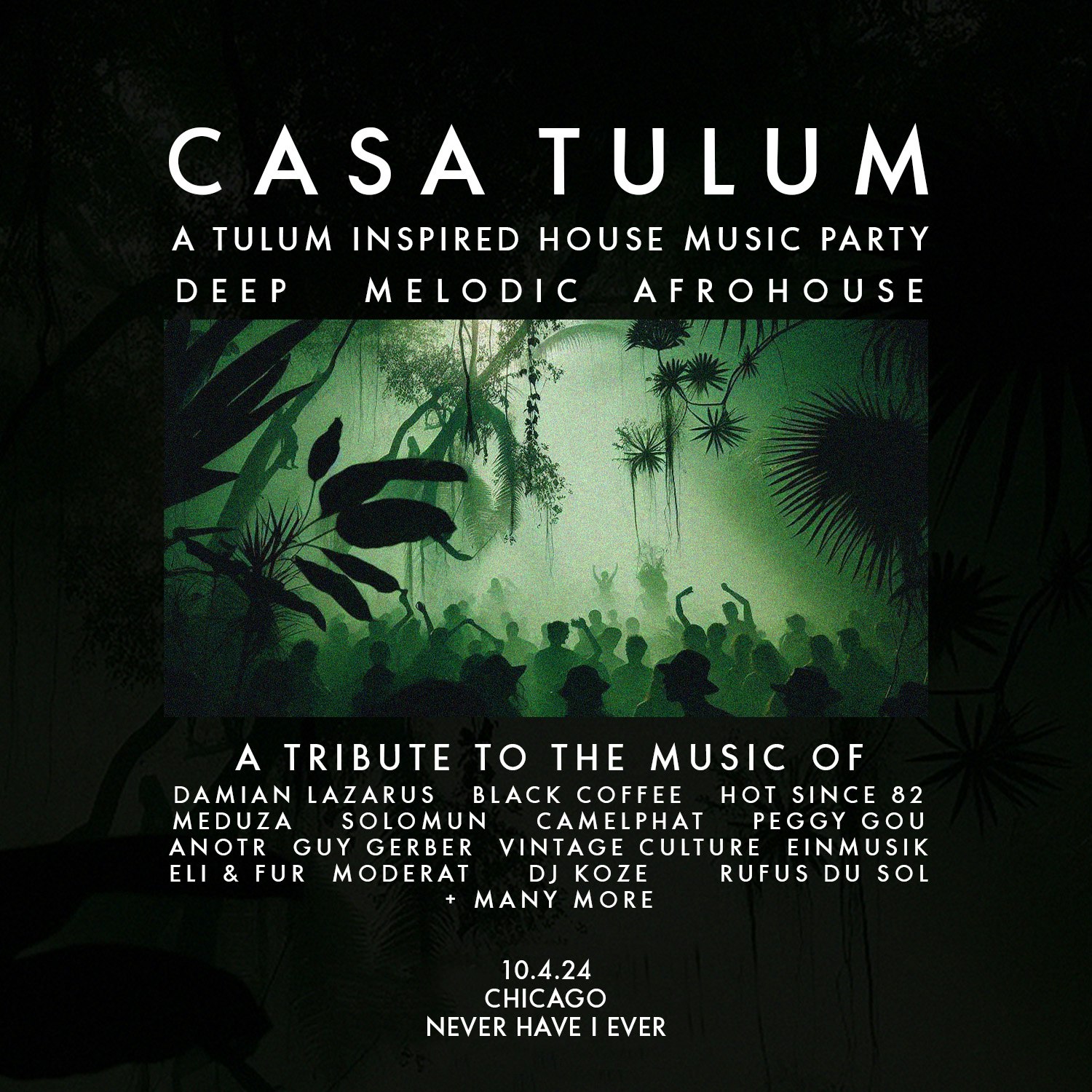 An entire night dedicated to the melodic and deep sounds of Tulum inspired house music. Only the best music and vibes all night long.