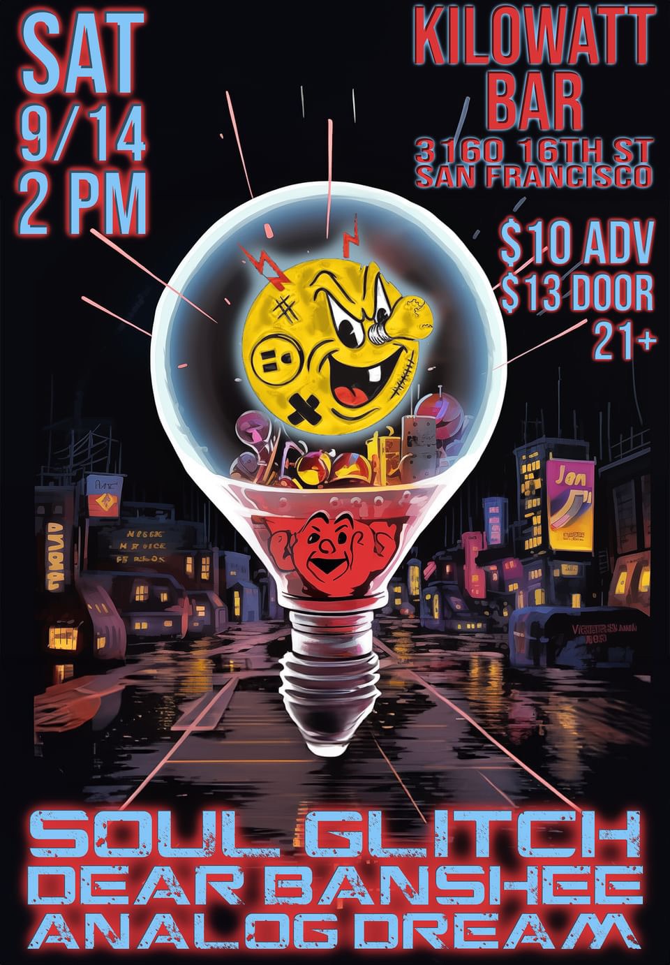 **Soul Glitch:** https://www.instagram.com/soulglitch_music/ **Dear Banshee:** https://www.instagram.com/dearbanshee/ **Analog Dream:** https://www.instagram.com/analogdreammusic/ Presented by Kilowatt. This is a 21+ event