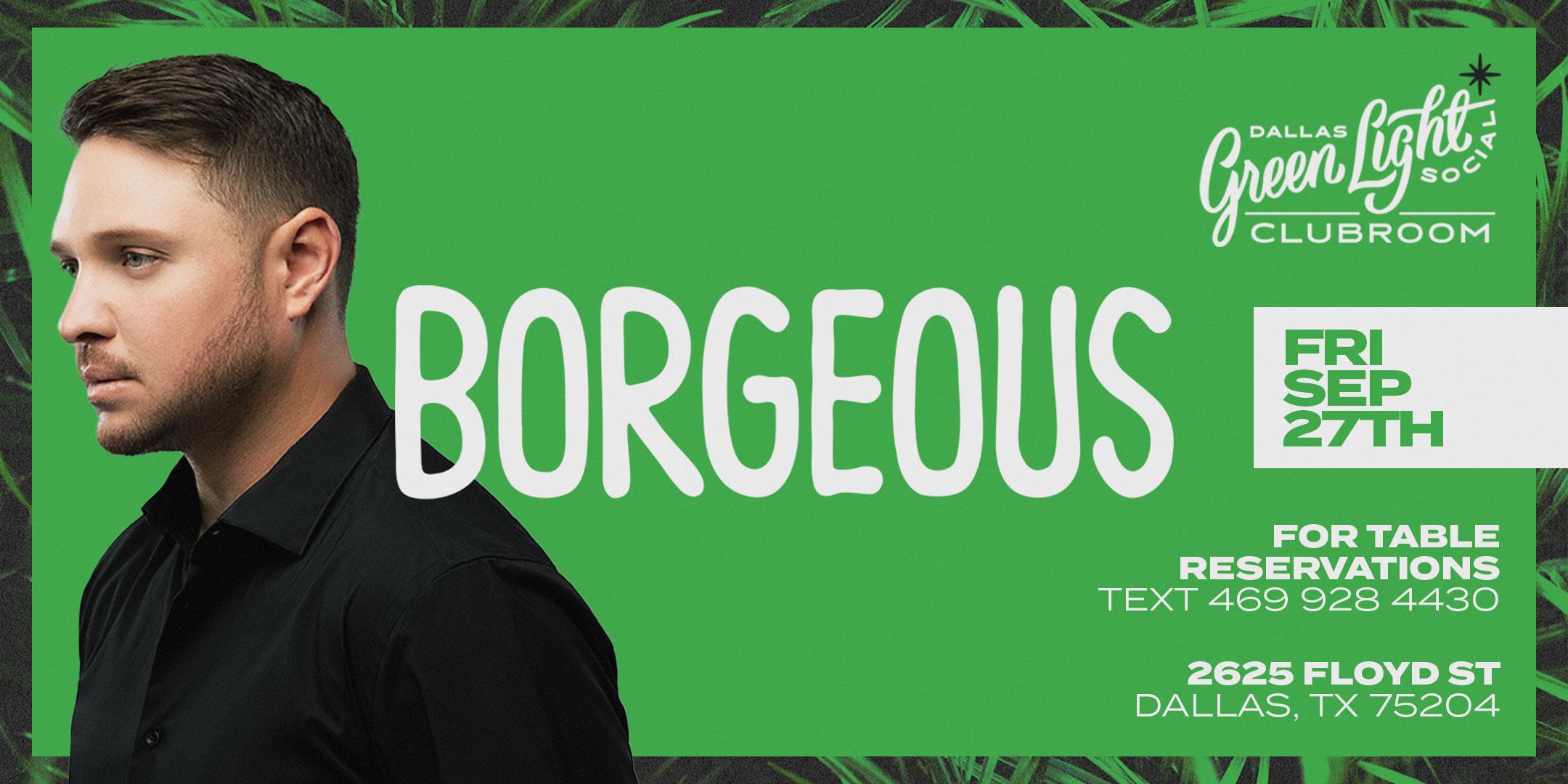 Join us September 27th at Green Light Social Dallas, TX for a Special Performance by BORGEOUS!