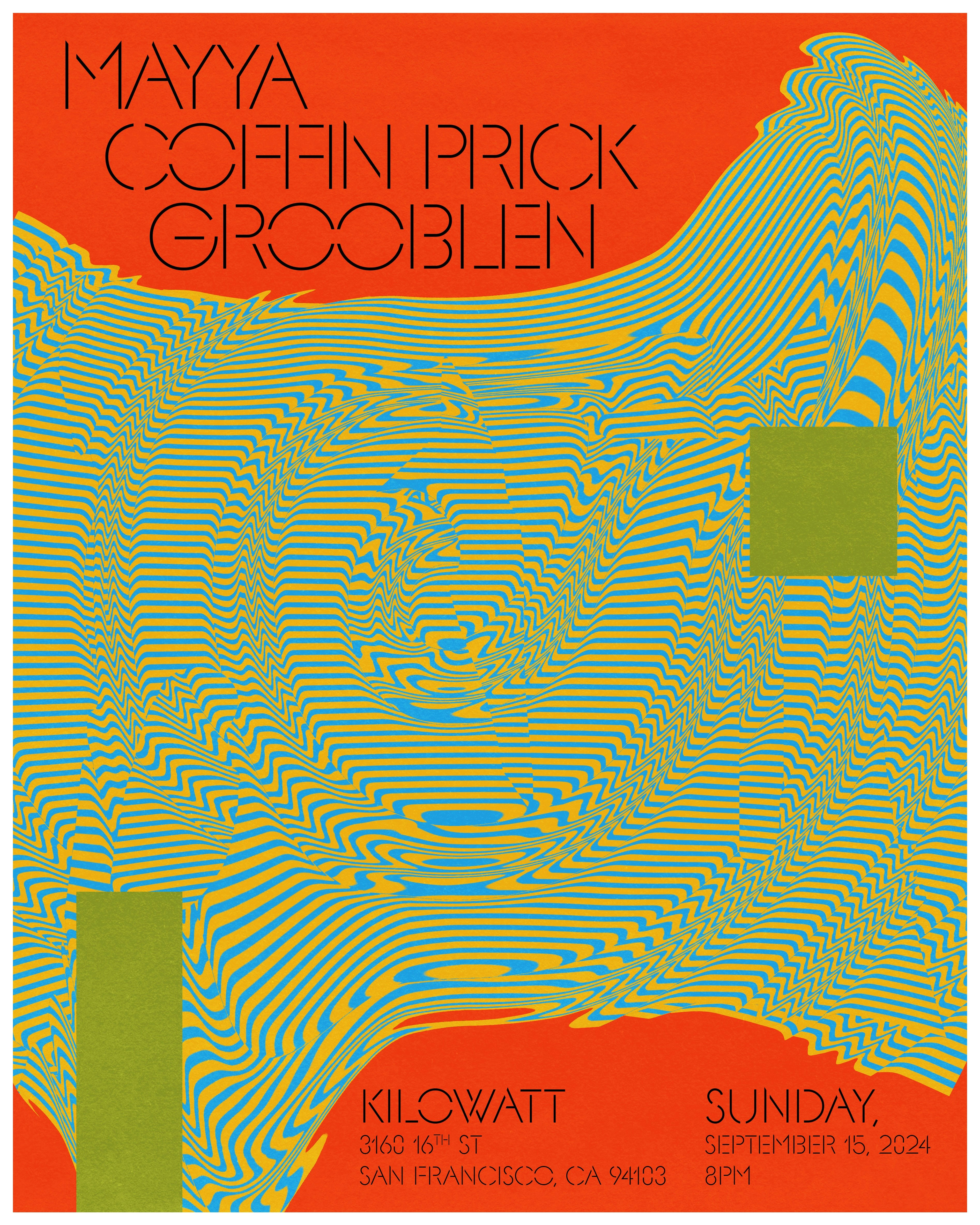 **MAYYA:** https://www.instagram.com/extremayya/ **Coffin Prick:** https://www.instagram.com/coffinprick/ **Grooblen:** https://www.instagram.com/ellieisgrooblen/ Presented by Kilowatt. This is a 21+ event