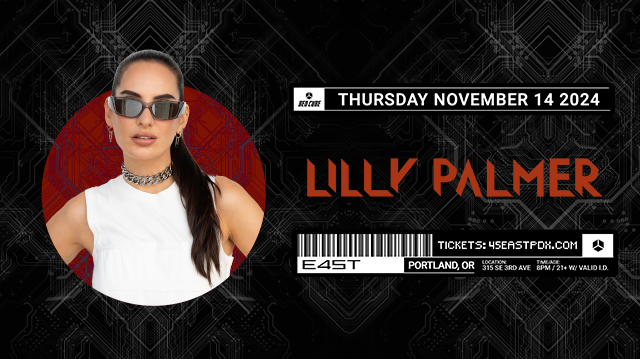 Red Cube Presents LILLY PALMER SUPPORT TBA Tickets on sale Thursday, 8.22 at 10 AM! Event Hours: 8 PM - 12 AM 21+ w/ Valid I.D. VIP Tables Available. Online reservation available here: http://www.45eastpdx.com/vip Nightclub Rules & Policy: http://www.45eastpdx.com/rules-policy View Upcoming Events at 45 East: https://www.45eastpdx.com/events 45 East 315 SE 3rd Ave. Portland, OR 97214 https://www.45eastpdx.com