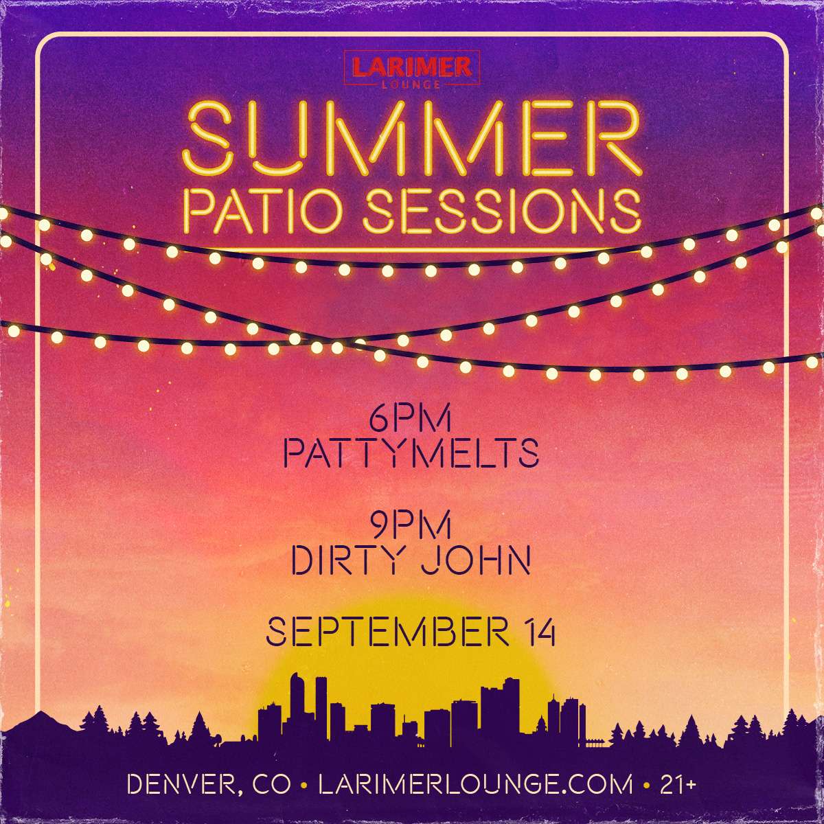 Larimer Lounge Presents Summer Sessions on Saturday, September 14th (FREE EVENTS). 6PM - Pattymelts 9PM - Dirty John 21+