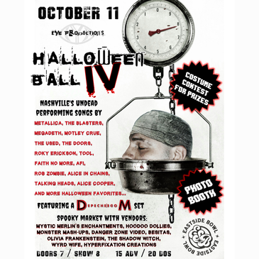 The Halloween Ball returns for another spooky night to celebrate the best time of the year! Nashville’s undead performing songs by METALLICA, THE BLASTERS, MEGADETH, MOTLEY CRUE, THE USED, THE DOORS, ROKY ERICKSON, TOOL, FAITH NO MORE, AFI, ROB ZOMBIE, ALICE IN CHAINS, TALKING HEADS, ALICE COOPER,