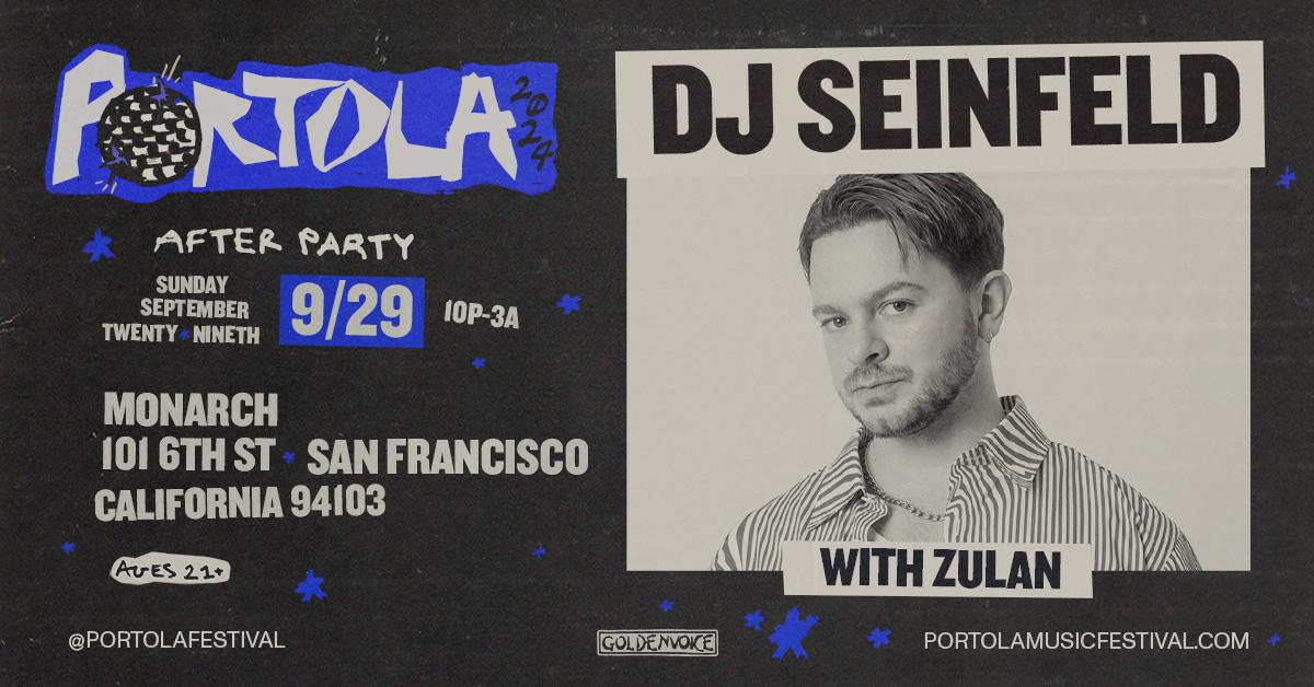 Continue the Portola party with DJ Seinfeld and Zulan at Monarch! Goldenvoice Presents: DJ Seinfeld with Zulan Sunday, September 29, 2024 | 10pm-3am | 21+