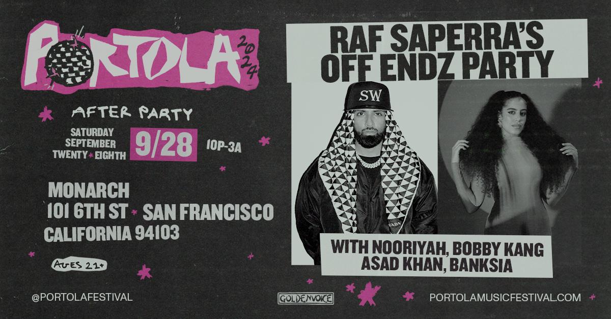 Continue the Portola party with Raf Saperra at Monarch! Goldenvoice Presents: Raf Saperra's Off Endz Party Saturday, September 28, 2024 | 10pm-3am | 21+
