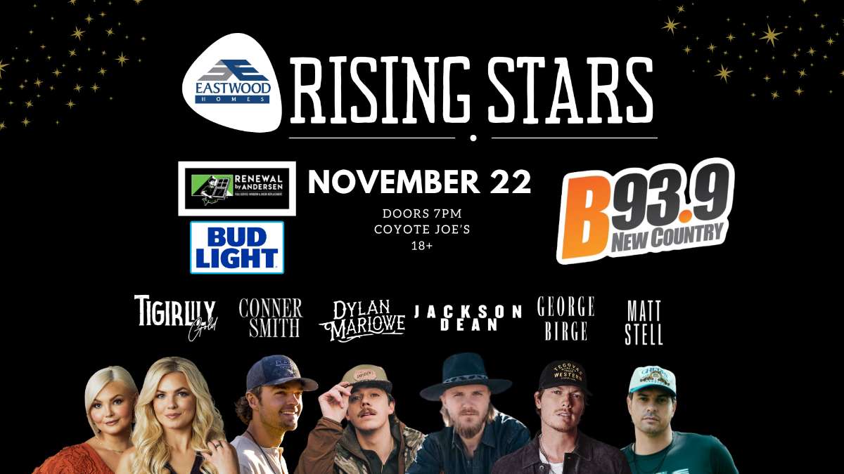 This show is 18+ Eastwood Homes & B93.9’s Rising Stars Featuring: Conner Smith/Jackson Dean/George Birge/Matt Stell/Dylan Marlowe/Tigirlily Gold