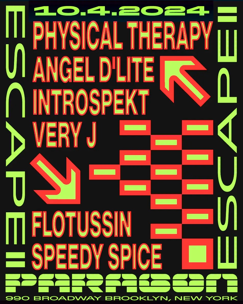 Escape: Physical Therapy, Angel D'lite, Introspekt + flotussin, speedy spice Presented by Paragon. This is a 21+ event.