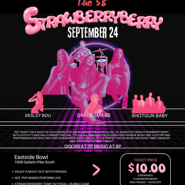 Join us for an electrifying all-pink party contest & concert that celebrates the essence of indie pop music! Hosted by the vibrant pop-rock band Strawberryberry, featuring friends