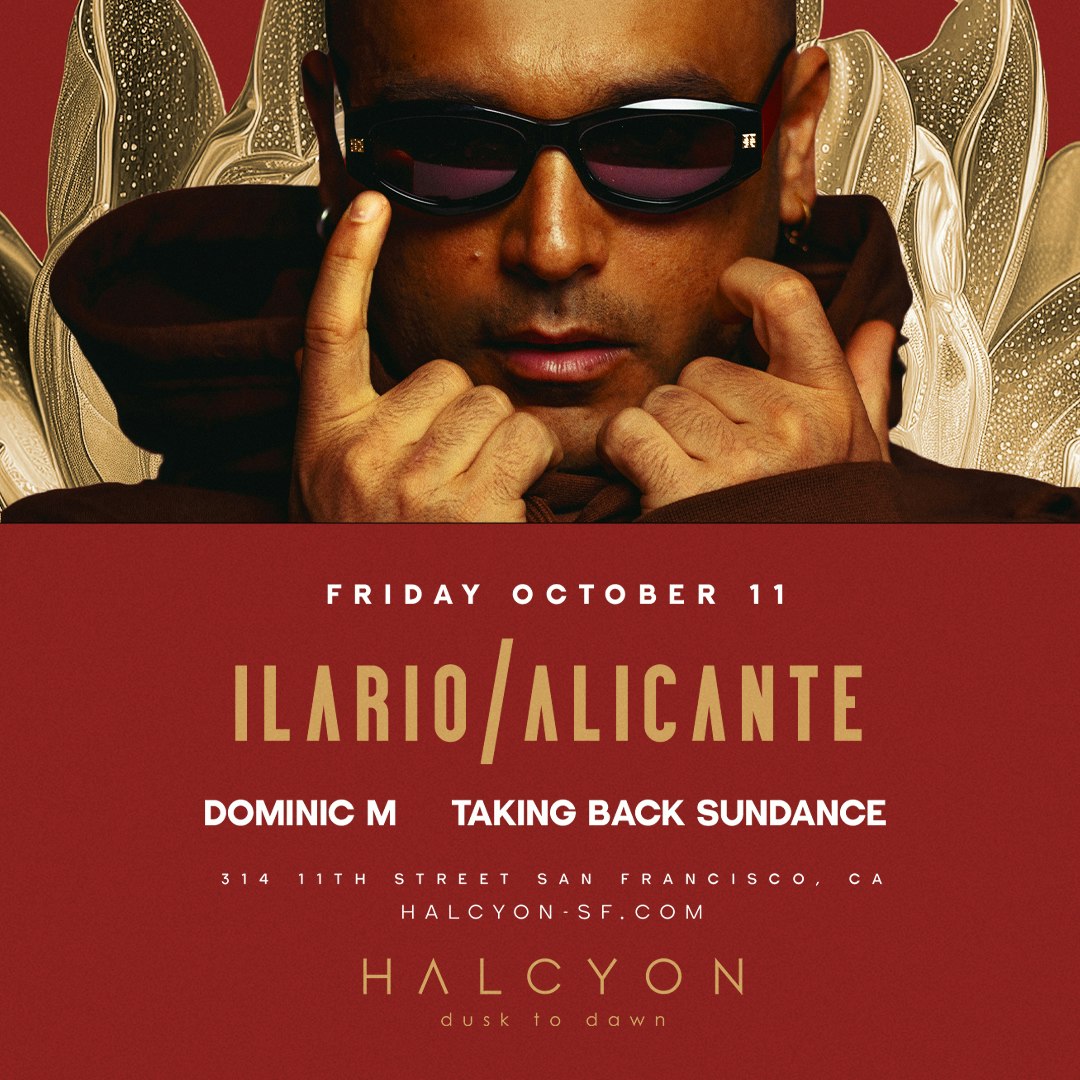 ILARIO ALICANTE the Italian TECHNO stallion and supreme selector charges the dance floor with relentless passion and power! DOMINIC M + TAKING BACK SUNDANCE support the reigning champion of timeless techno. Presented by Halcyon. This is a 21+ event