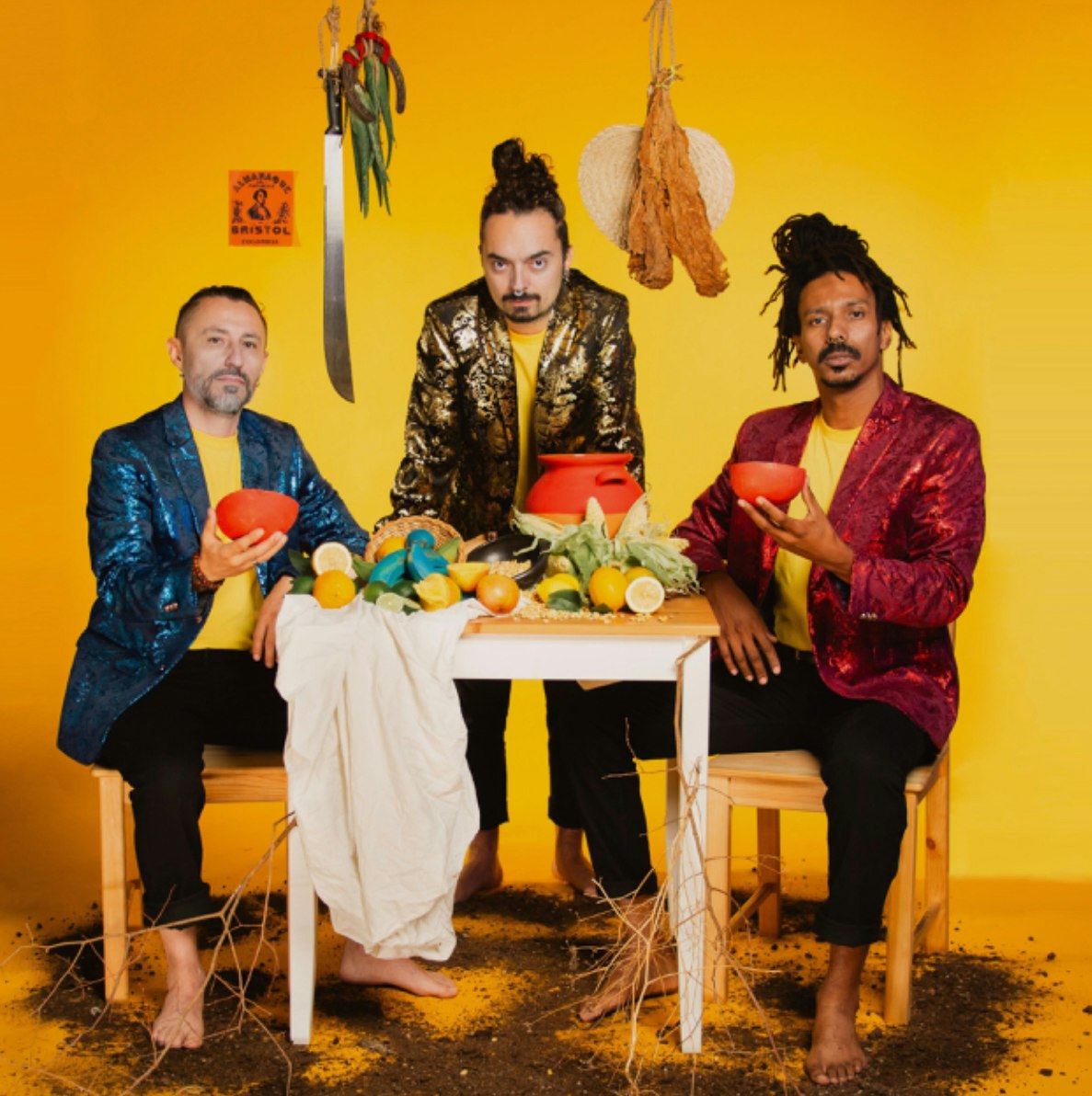 Nemegata is a fierce power trio fronted by Víctor-Andrés Cruz “El Guámbito” on lead vocals, electric guitar,synth and Colombian percussion. With the taut, polyrhythmic lock of César Valencia “I Nova” on bass, synth, Colombian percussion, and vocals. And Fabián Rincón “Don Fabo” on drums, synth drums, and vocals. Their sound is often described as hallucinatory, otherworldly, and haunting.