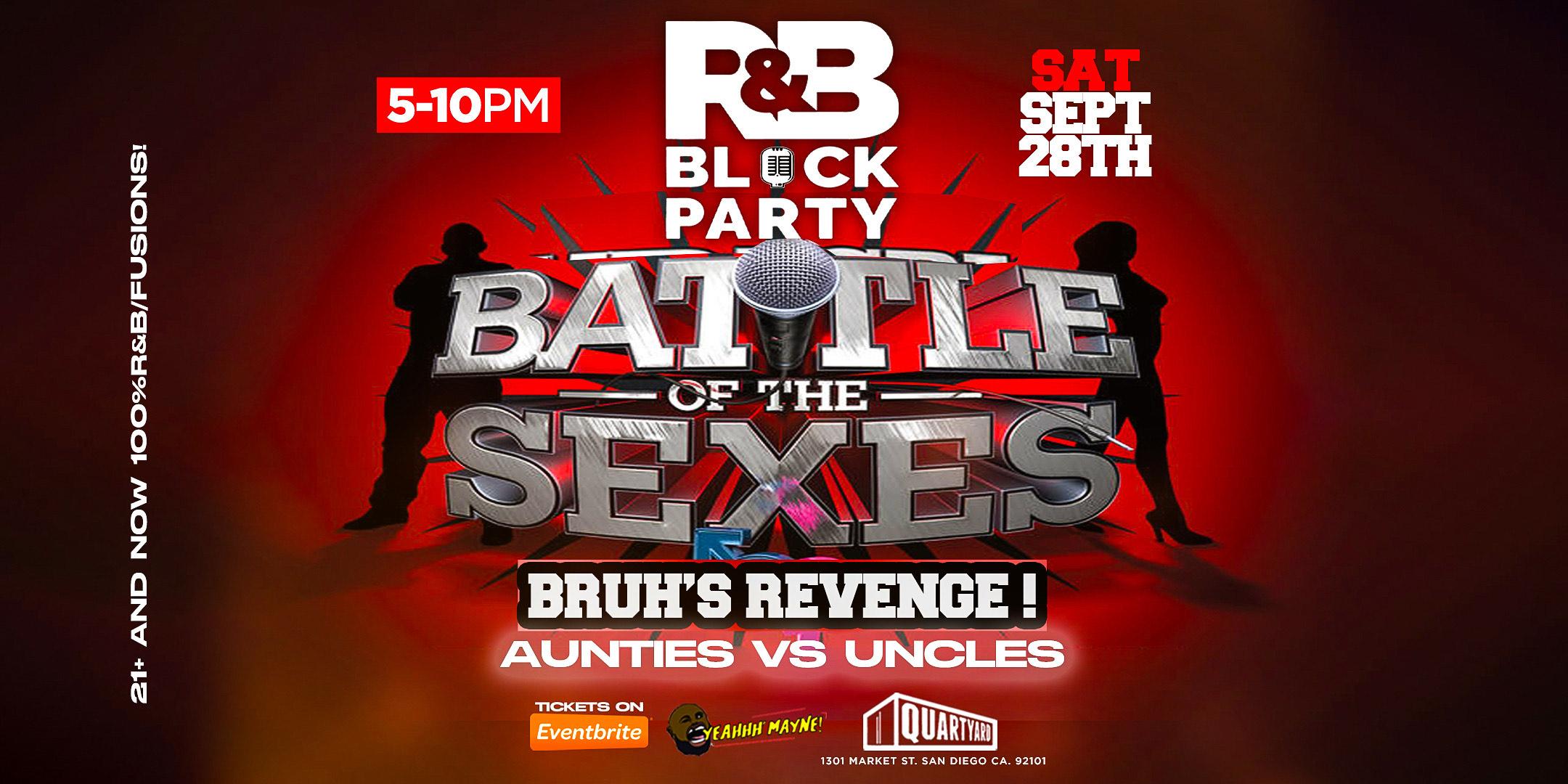 The women won last year, this year the men are out for revenge! @Yeahhhmayne R&B Block Party @QuartyardSD presents the ultimate R&B Battle of the Sexes: Part 2! Aunties vs. Uncles!