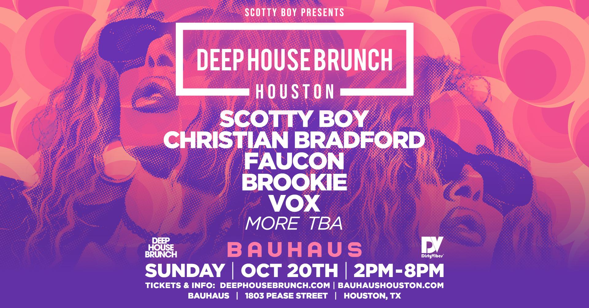 Scotty Boy brings his Deep House Brunch to the haus Scotty Boy is known for his Deep House Brunch popups around the nation and making his first stop in Houston at the haus of house. Complimentary Brunch for all, Doors open at 2pm