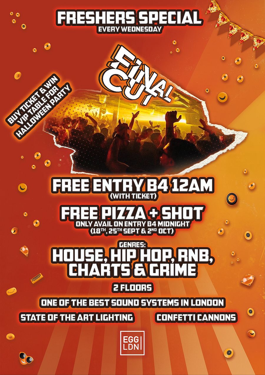 Final Cut is 18+ event. Everyone attending Egg must have a valid form of photo ID to present to be scanned on entry. The accepted forms of ID are: unexpired passport, driving license, provisional driving license, photo cards featuring the pass hologram. Photocopies, photos or screenshots of IDs are not accepted.