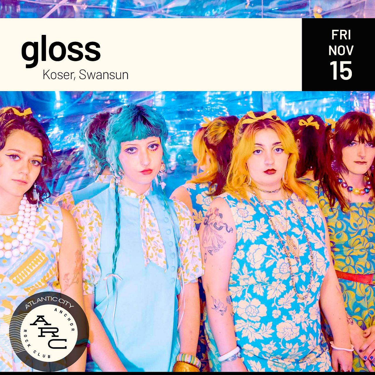 gloss // Koser // Swansun Doors - 7:00 pm // Showtime - 8:00 pm // 18+ Anchor Rock Club // 247 S New York Ave // Atlantic City NJ