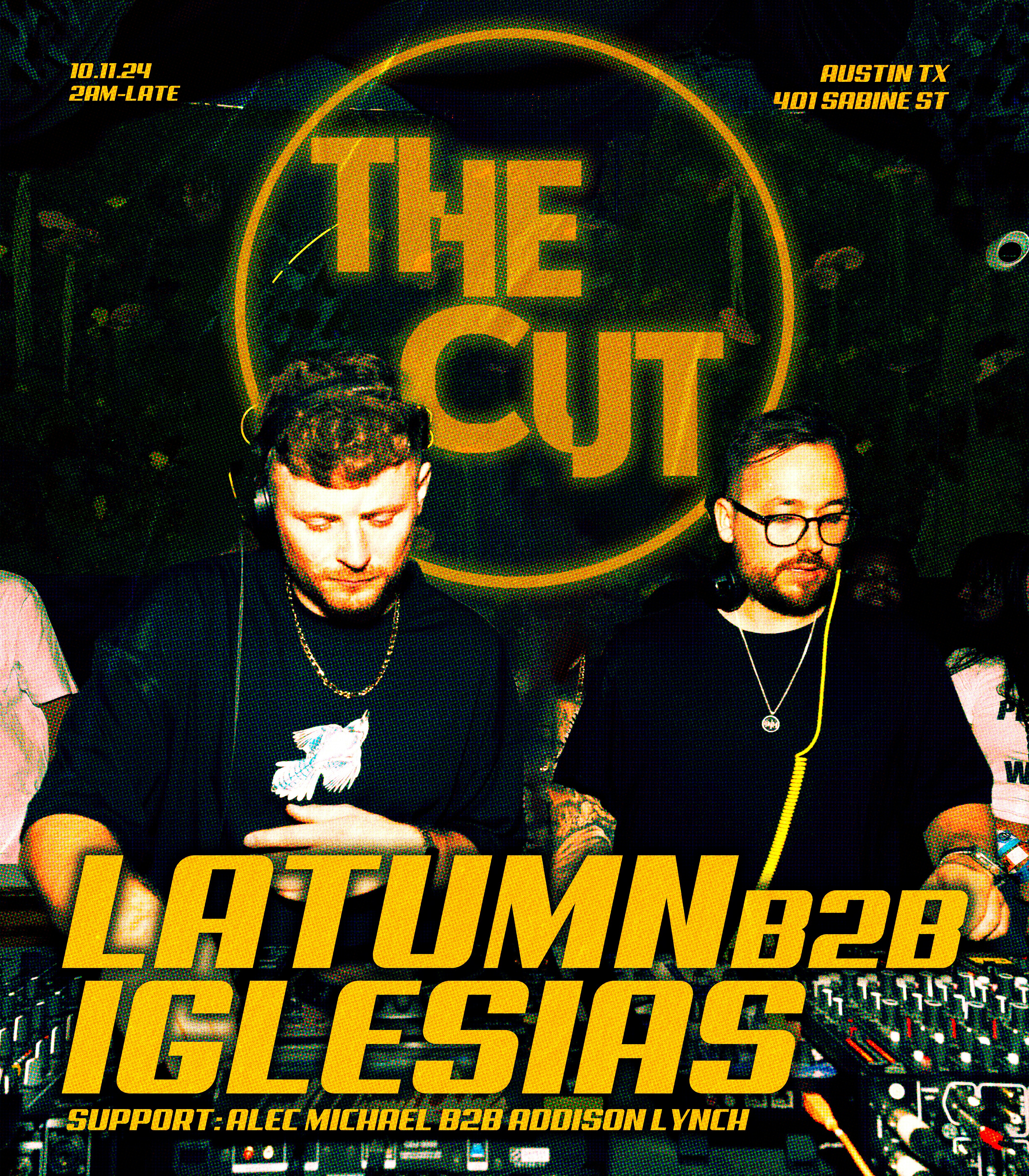 Nowhere Residents Latmun and Iglesias come to throw down late night at the Cut ATX. Doors open at 02:00a the night of the show Presented by The Cut. This is a 21+ event