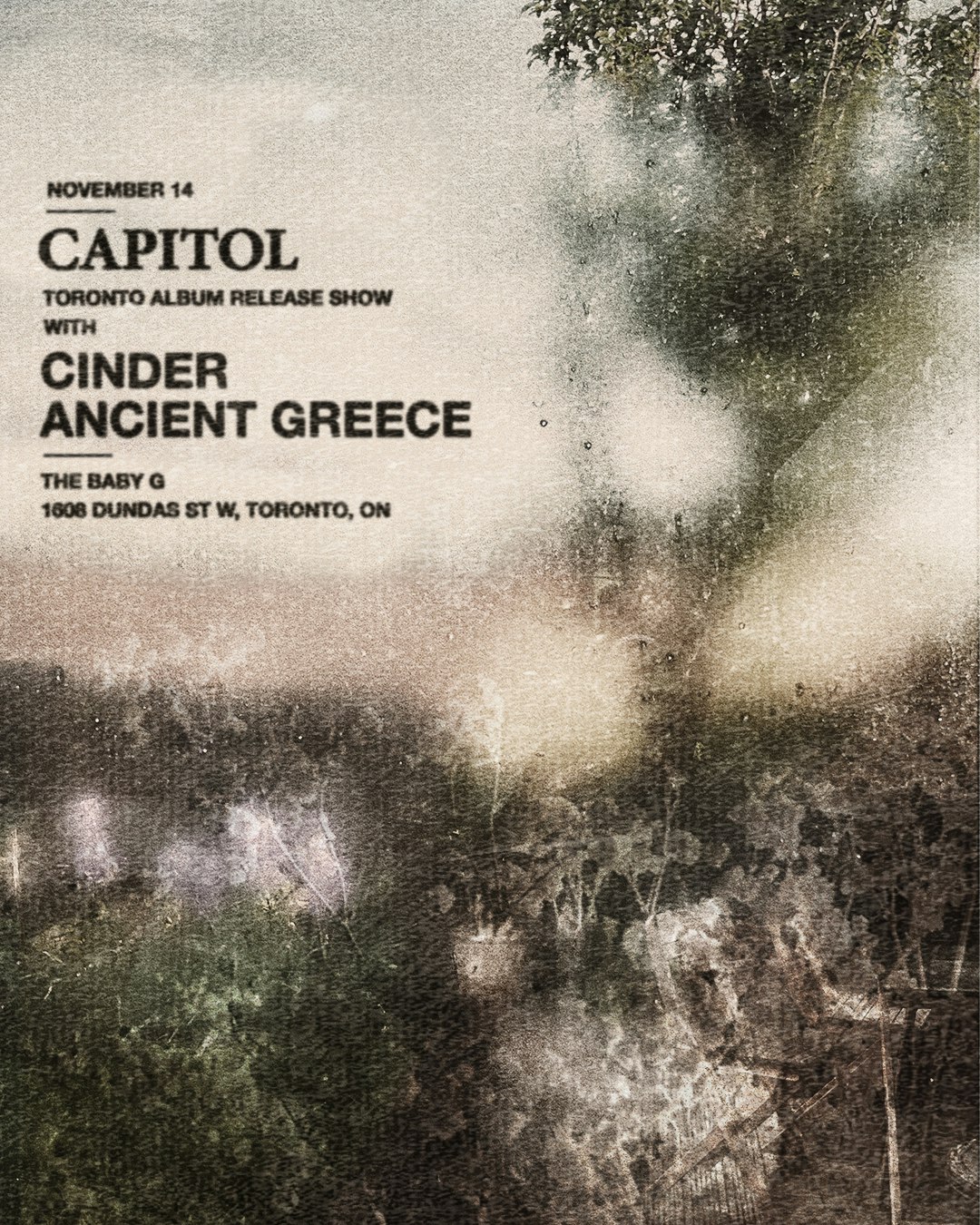 Capitol celebrate their sophomore LP "Sounds Like a Place" on November 14th in Toronto, with support from Ancient Greece and CINDER.