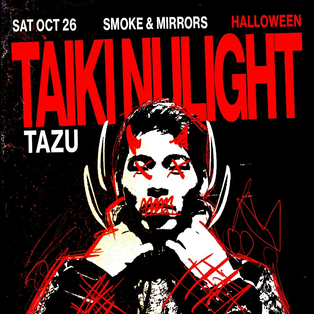 Saturday, October 26th, 2024 TAIKI NULIGHT Tazu 2045 N Milwaukee Ave Chicago, IL 60647 Doors 10pm - 21+ w/ valid ID Presented by Smoke & Mirrors. This is a 21+ event