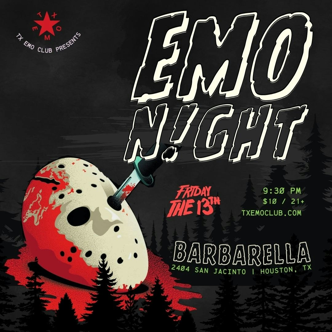 EMO NIGHT HOUSTON ~FRIDAY THE !3th ~ <3 BONUS MOSH 4 THE WEEKEND WARRIORS <3 Presented by Texas Emo Club. This is a 21+ event.