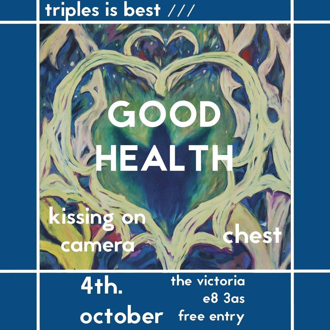 Triples Is Best returns to The Victoria for another night of free entry fun. Joining us will be Good Health, plus support from Kissing On Camera and Chest. Presented by Triples Is Best. This is an 18+ event