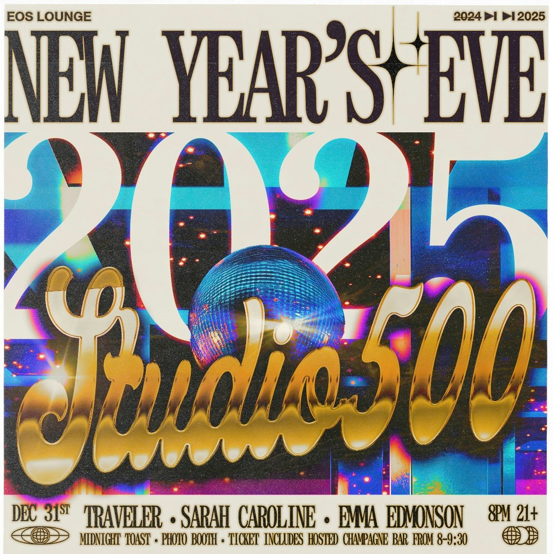 Join us at Eos Lounge for a toast into the new year! Three rooms of music, midnight toast, classy vibes and fine drinks! "Studio 500" themed, based off the iconic New York City night night club Studio 54. Presented by EOS Lounge. This is a 21+ event