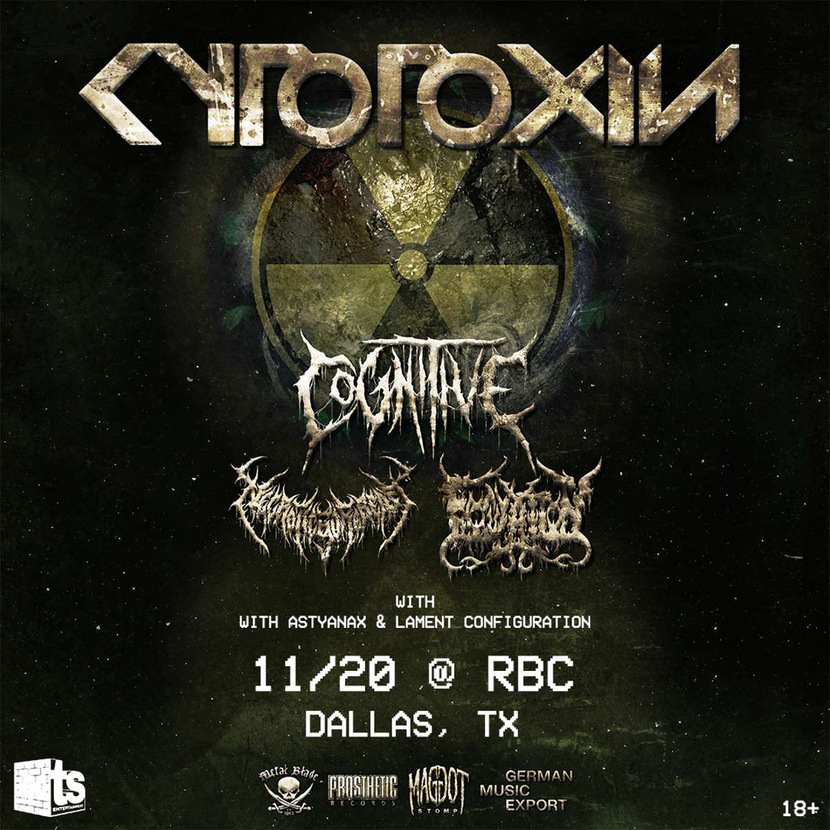 CYTOTOXIN is coming to Dallas, TX on November 20th at RBC Deep Ellum with Special Guests Cognitive, Inoculation, Necroticgorebeast, Astyanax, and Lament Configuration!