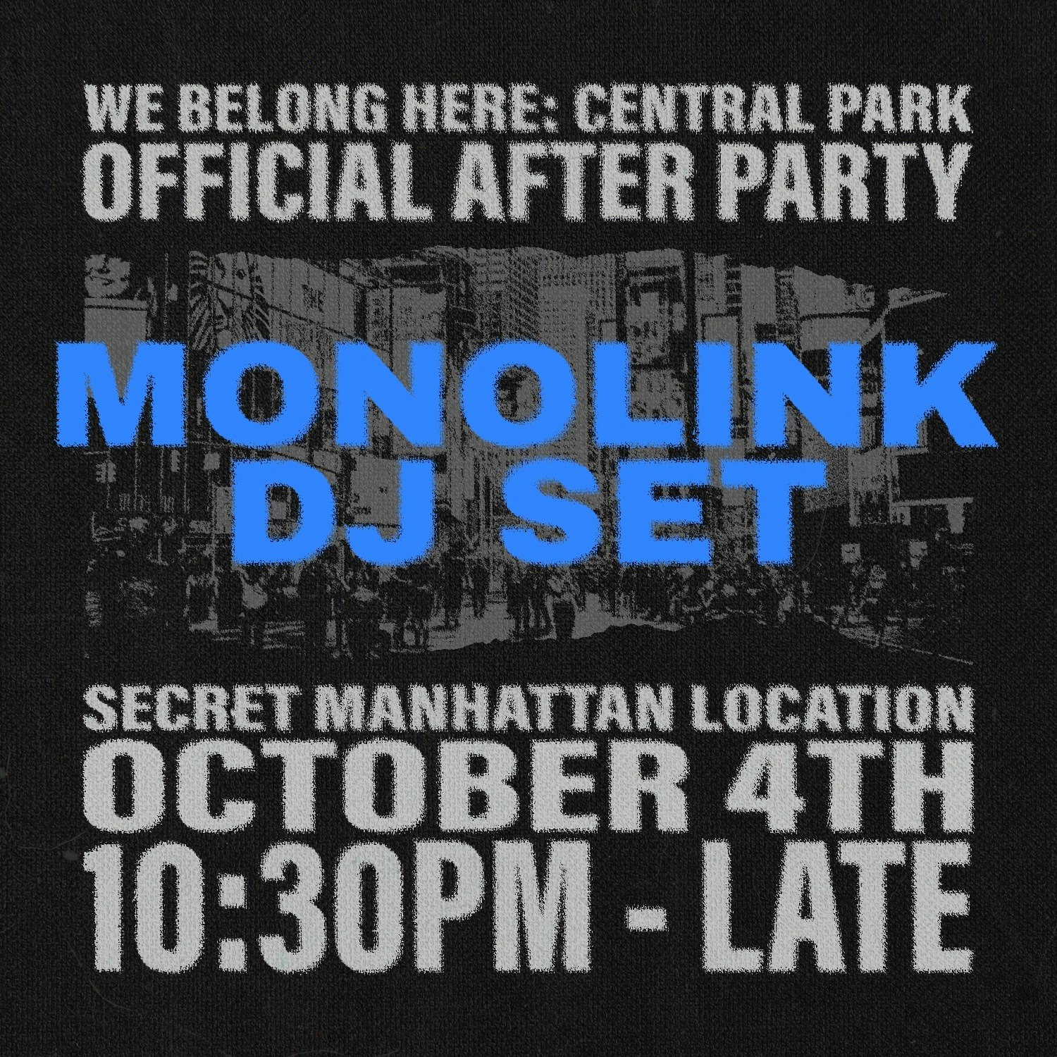 The dancing doesn't have to stop, it's just switching locations. This will be a very special and intimate Monolink DJ set, accompanied by special guests.