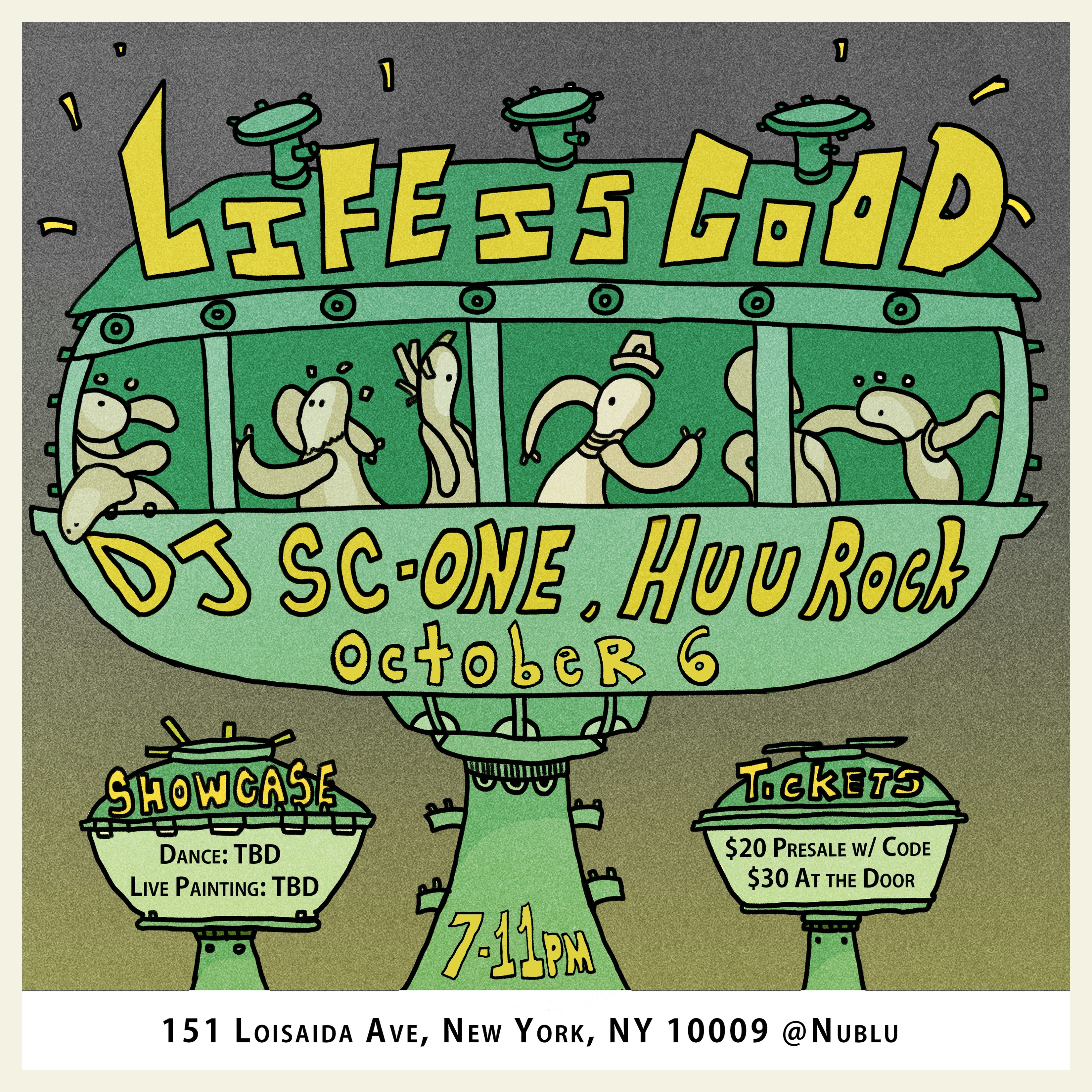 Life Is Good Dj Sc-one, Huu Rock Presented by Nublu. This is a 21+ event