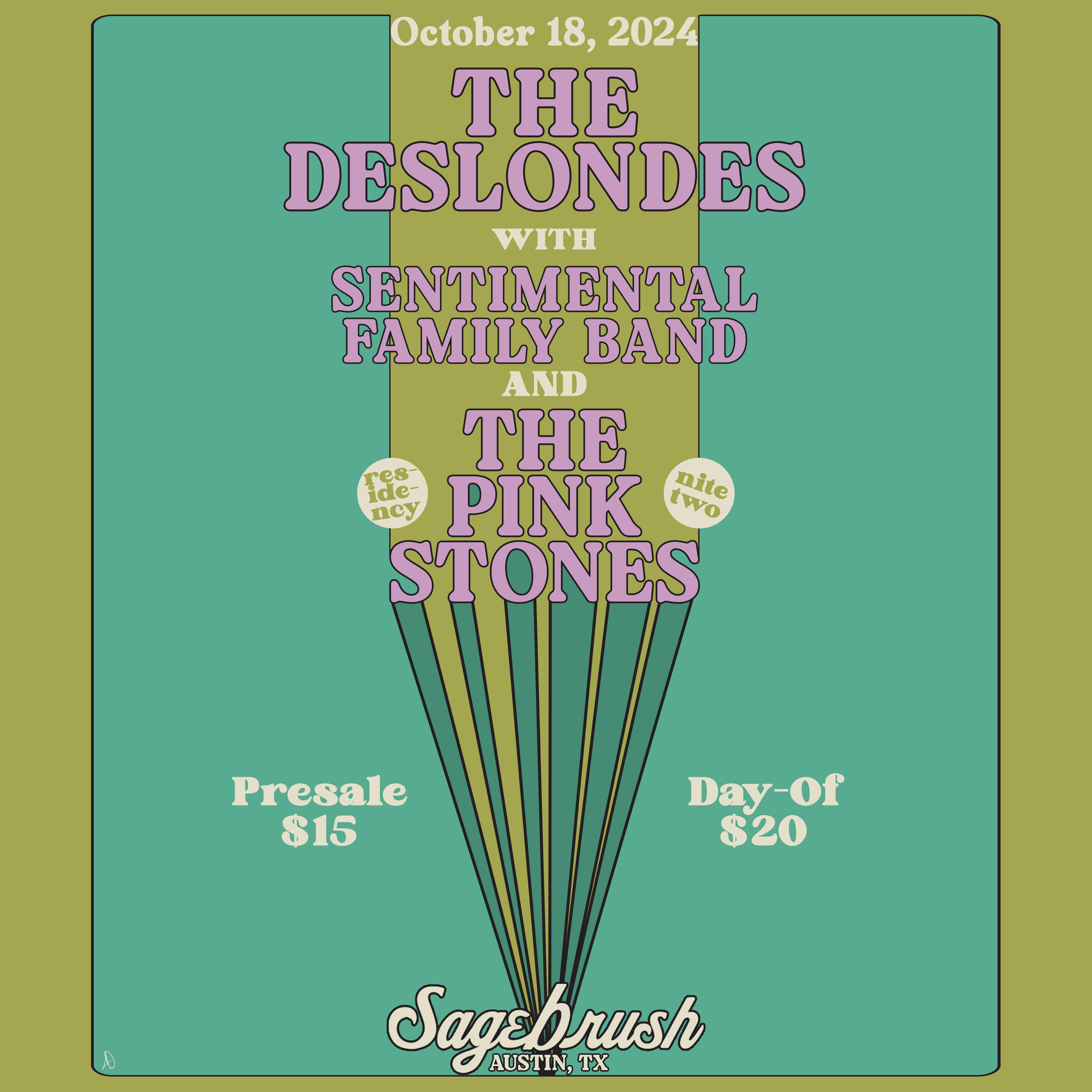 night two of the pink stones residency taking over sagebrush featuring sentimental family band and Deslondes Presented by Sagebrush This is a 21+ event