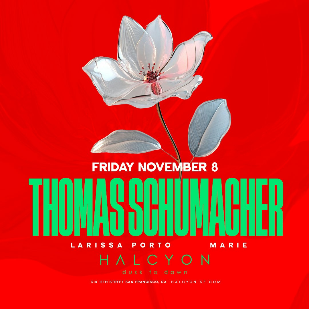 THOMAS SCHUMACHER the Berlin based TECHNO producer and one of the most enduring and versatile artists in electronic music makes his club debut! LARISSA PORTO + MARIE support the German Techno chart topper! Presented by Halcyon. This is a 21+ event