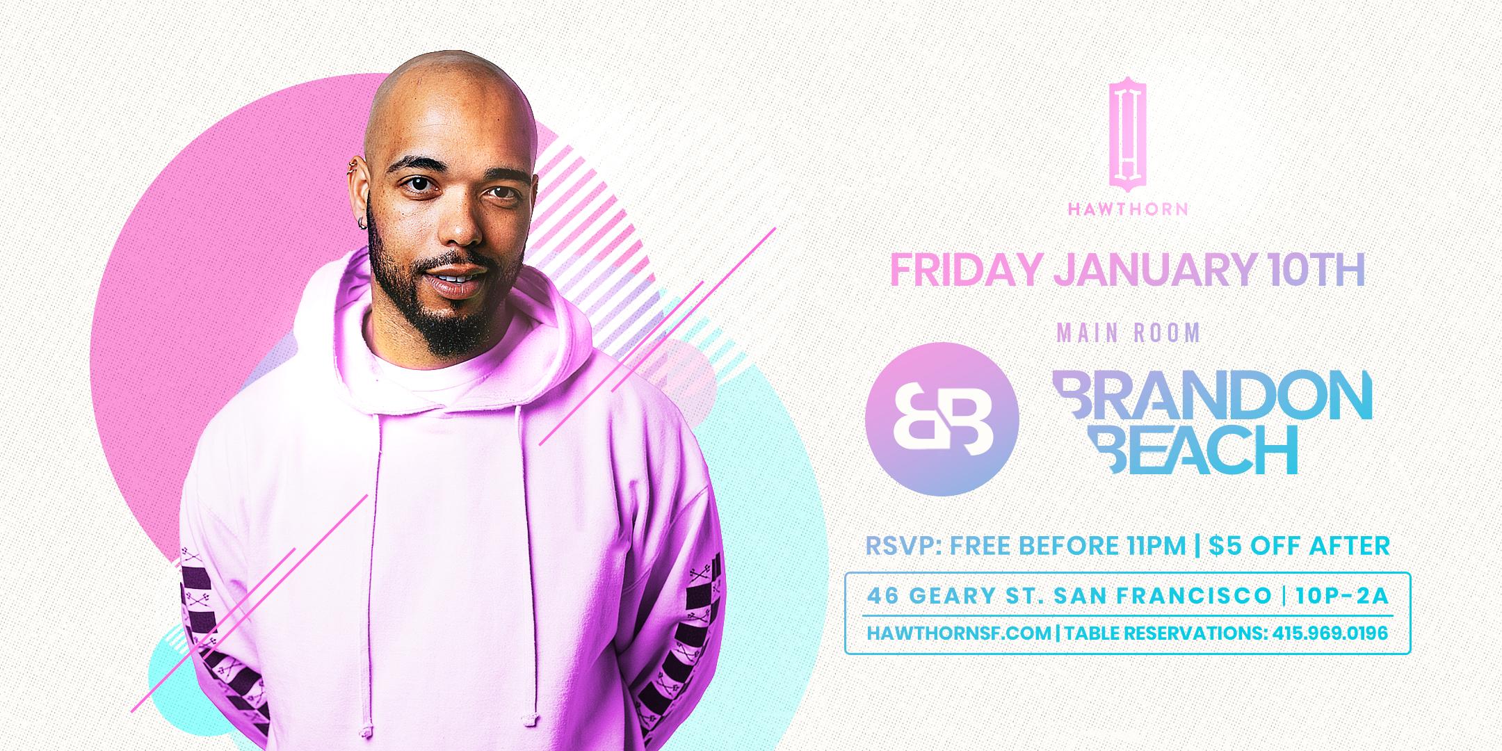 Main Room (Open Format | Hip Hop | Top 40): Brandon Beach RSVP: Free before 11pm; $5 OFF After