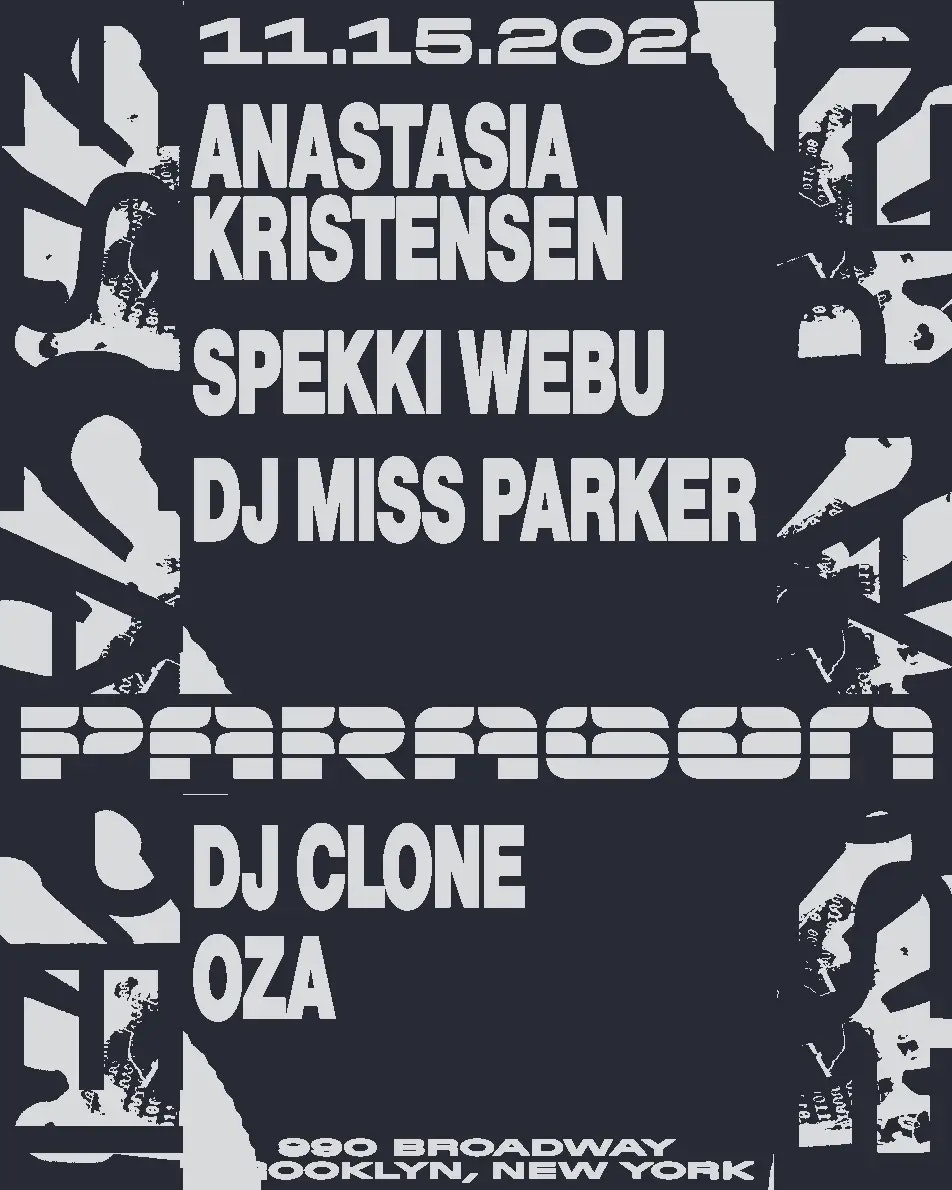 Anastasia Kristensen, Spekki Webu, DJ Miss Parker + DJ Clone, OZA Presented by Paragon. This is a 21+ event.