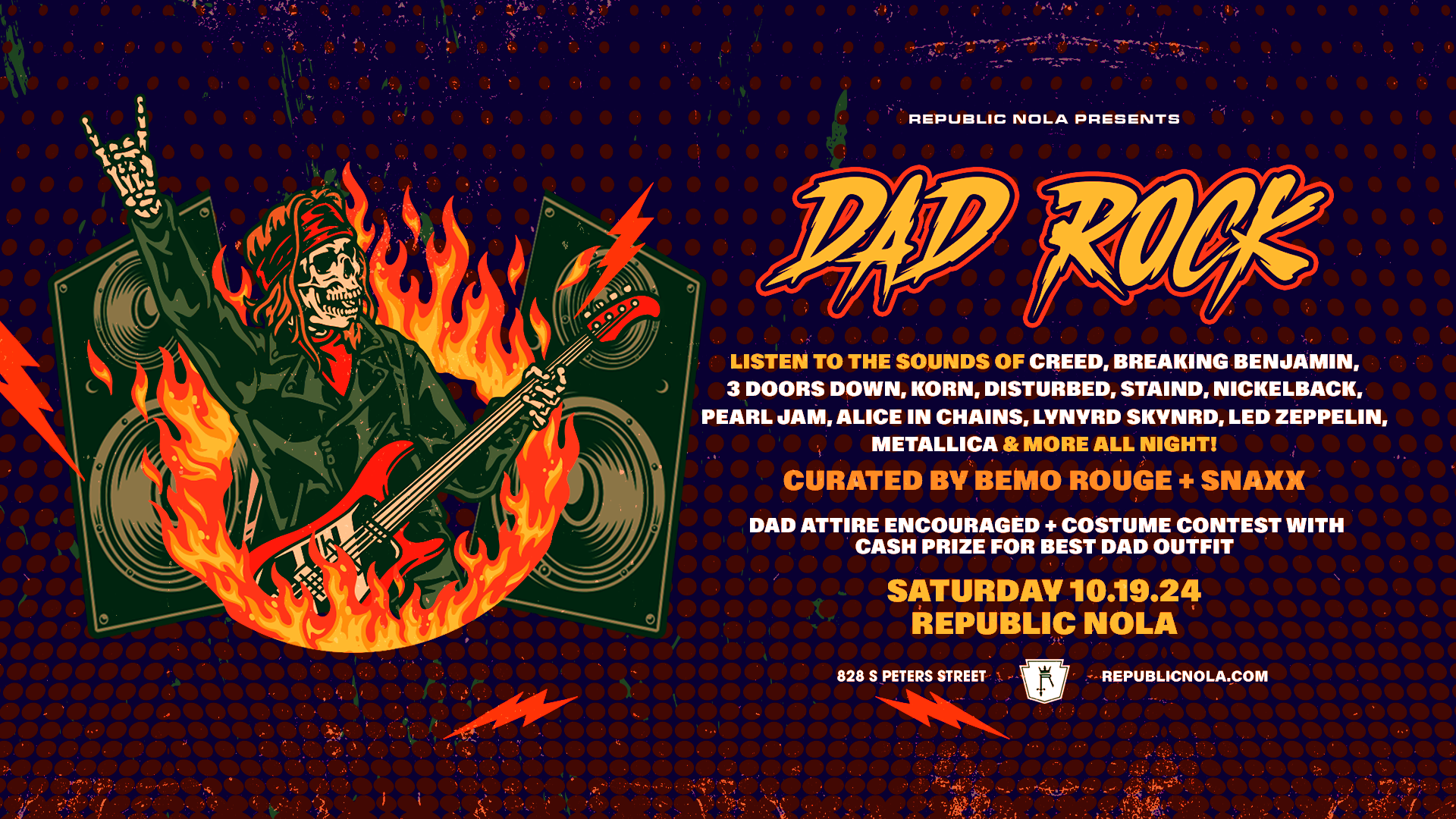 Republic NOLA Presents... DAD ROCK curated by Bemo Rouge & SNAXX on Saturday 10.19!