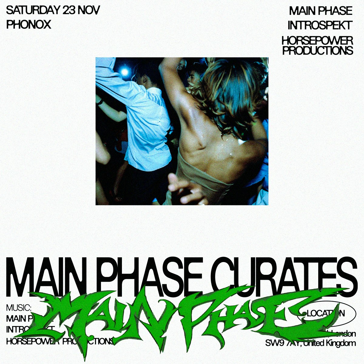 The first instalment of Main Phase's brand new curation series lands at Phonox this November with a trio of selecta's known for pushing the garage sound in their own unique ways.