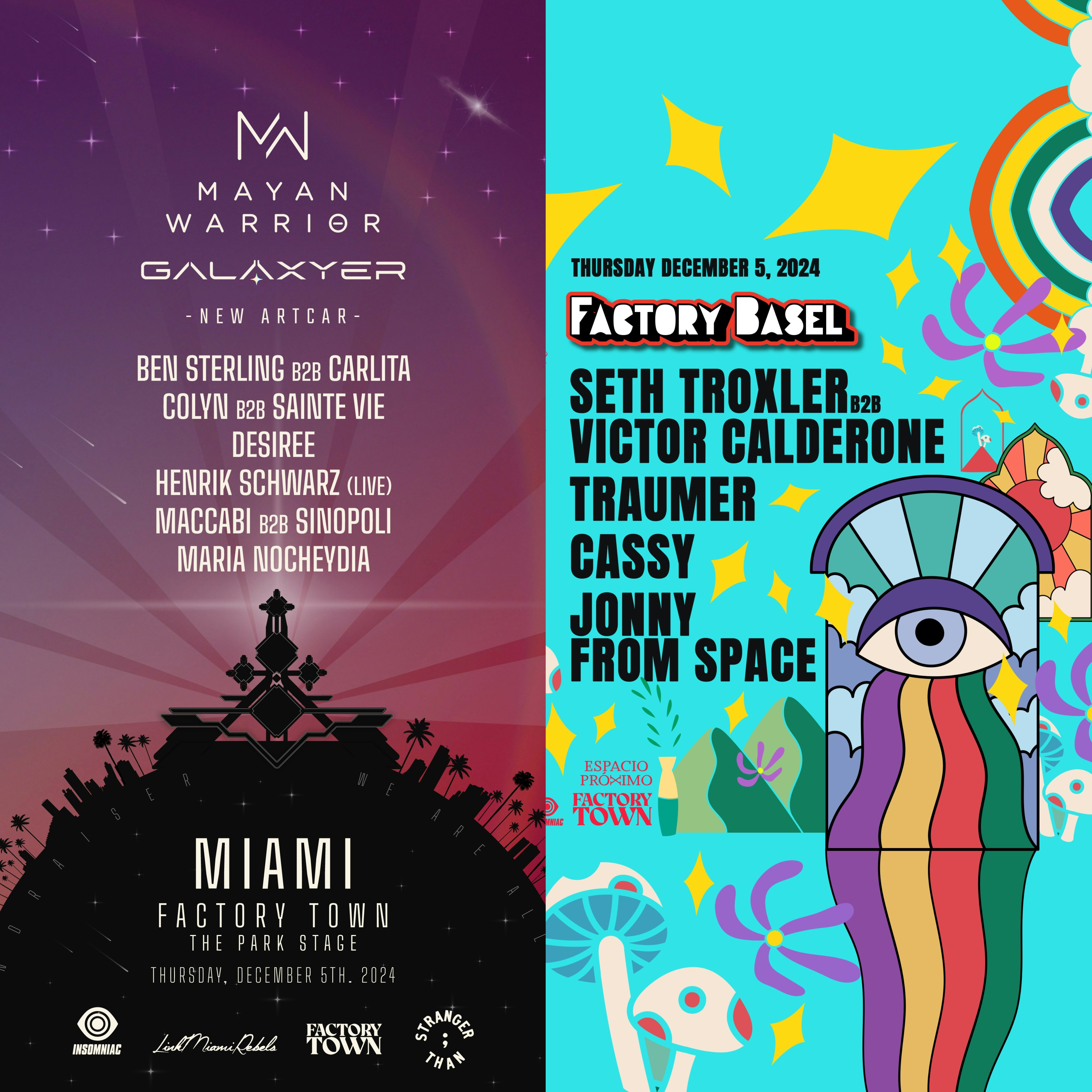 Mayan Warrior returns to Factory Town for a special Factory Basel fundraising celebration, featuring a new art car and an interstellar lineup at The Park stage.