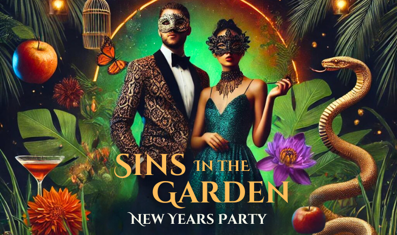 Imagine stepping into a lush, tropical paradise as the sun sets on Miami Beach for an Eden-themed New Year's Eve party. Palms sway gently in the ocean breeze while oversized, exotic plants and vibrant flowers create a verdant backdrop.