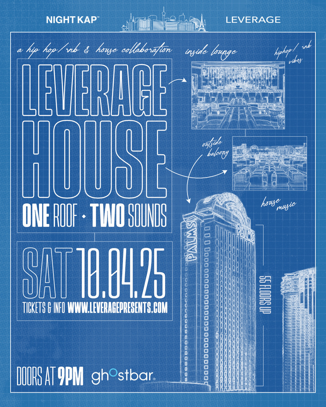 Leverage Promotions and Ghostbar presents "Leverage House" Rooftop party with DJs spinning your favorite "House" music on the patio 55 floors up overlooking the Las Vegas Strip and DJs spinning Hip Hop and R&B inside the lounge. $10 Ketel One drinks 9pm - 11pm. Guarantee your entry and get a table! Entertainment is subject to change Must be 21 and over with valid ID